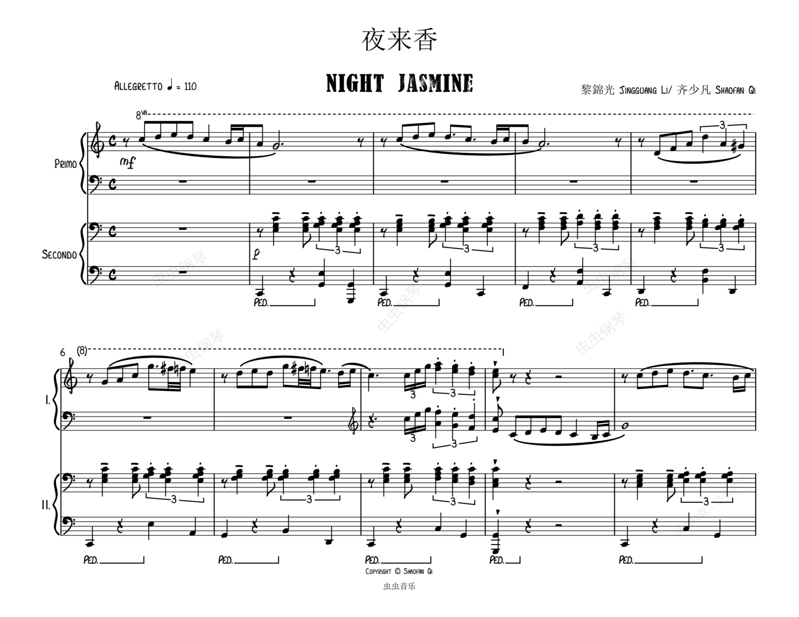 钢琴谱:【四手连弹】爵士版《夜来香》