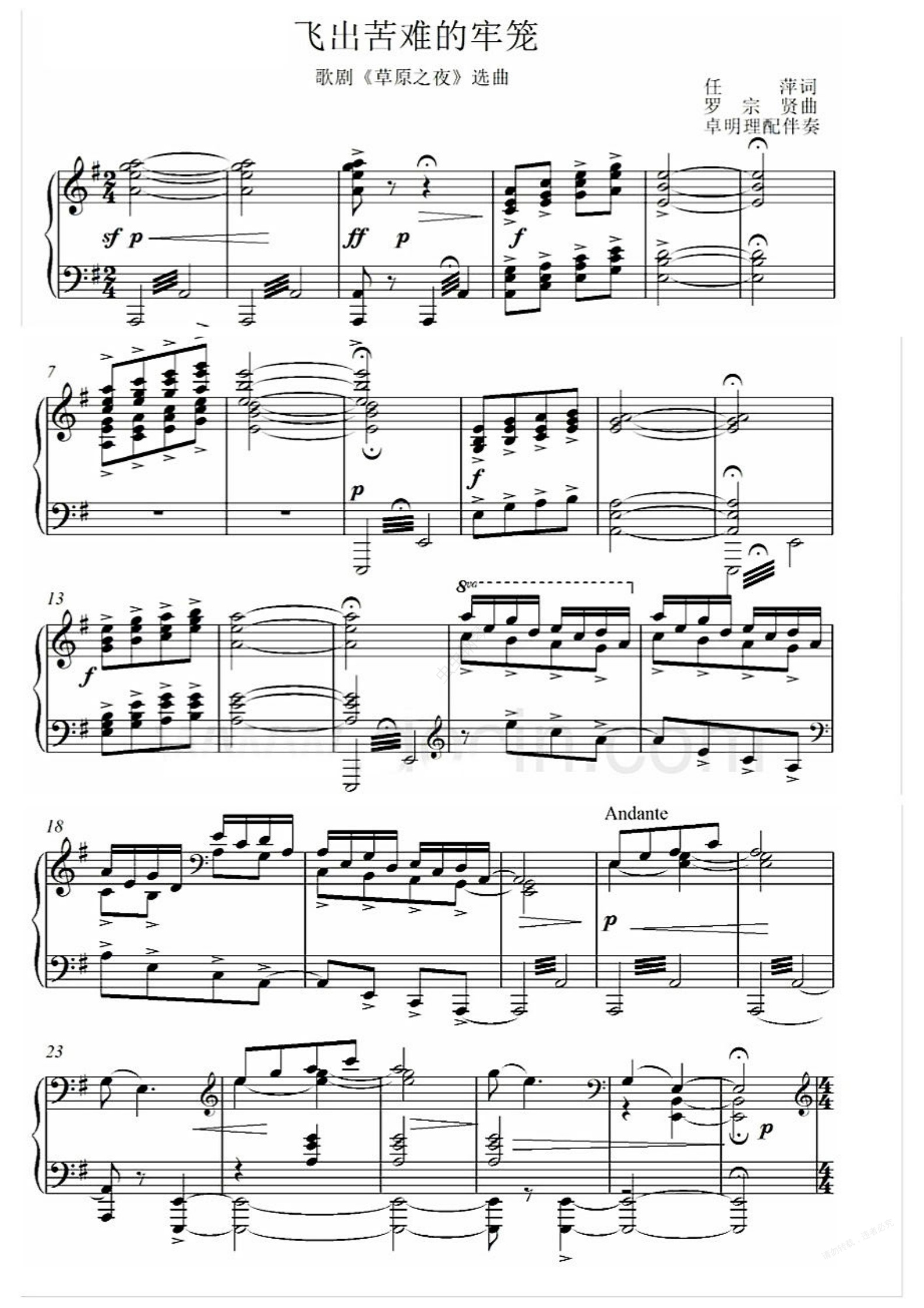 钢琴谱:飞出这苦难的牢笼(正谱)
