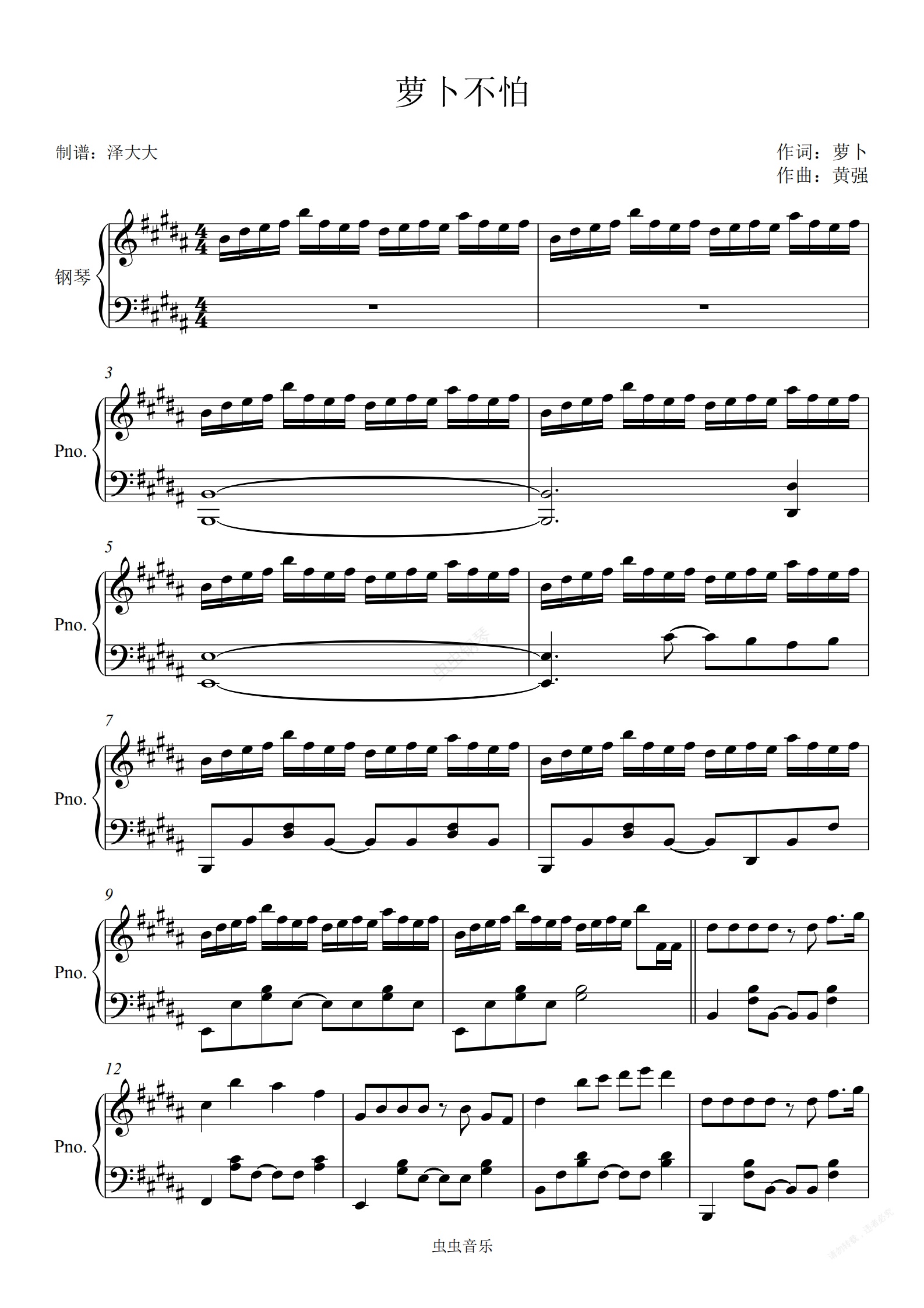 钢琴谱:萝卜不怕【完美独奏版】泽大大 保卫萝卜