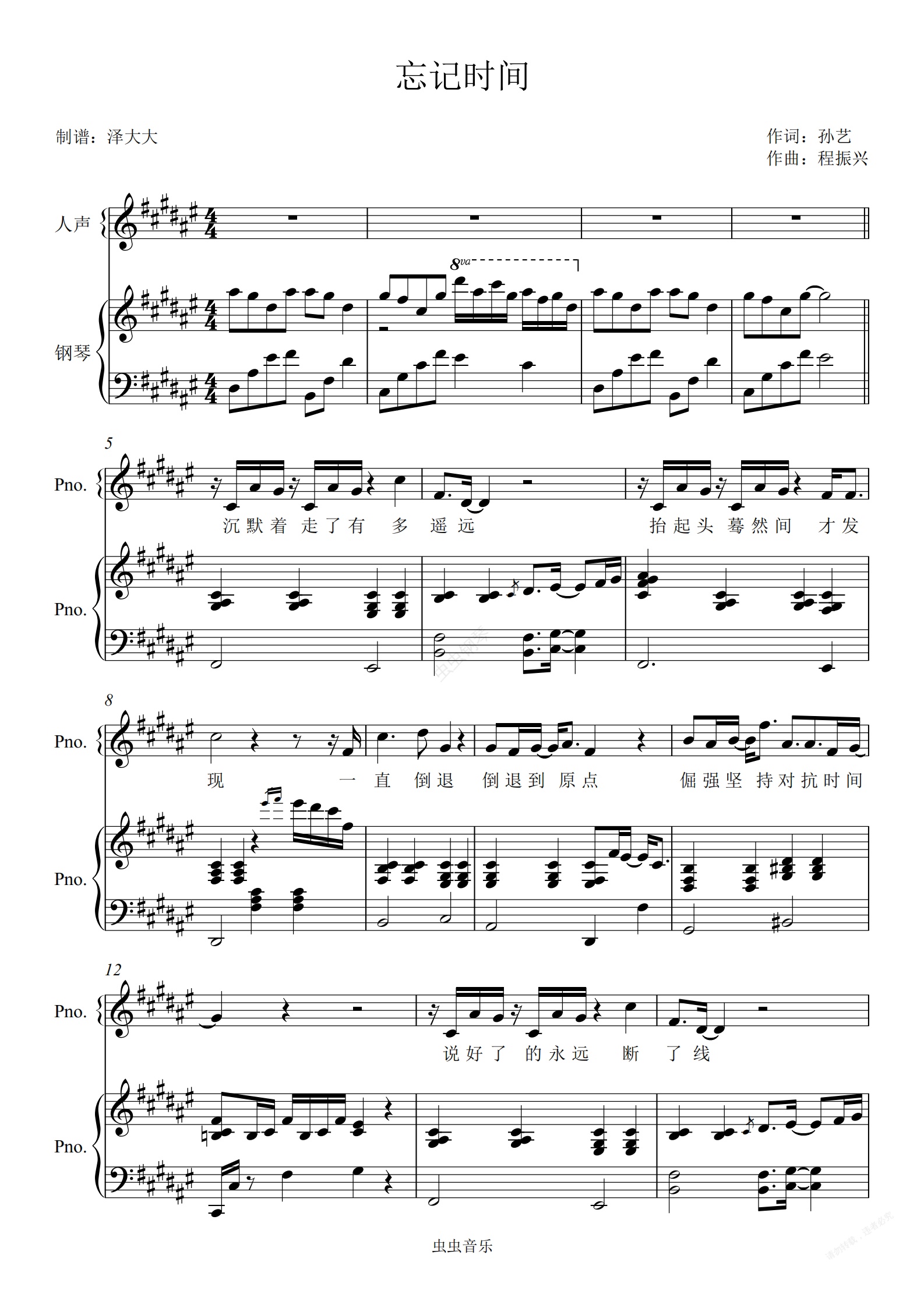 钢琴谱:忘记时间【原版精编弹唱附词】泽大大 胡歌 仙剑奇侠传