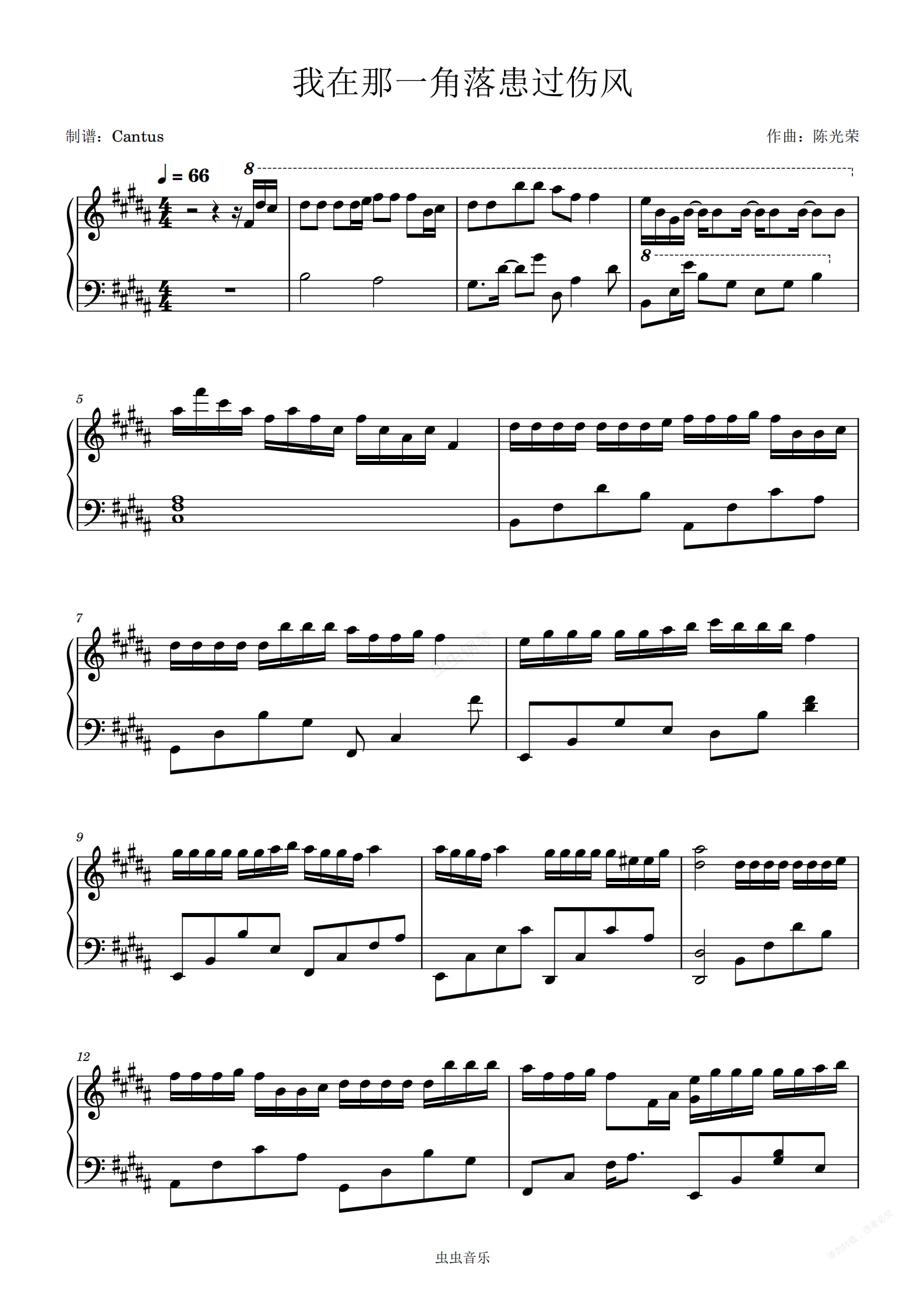 钢琴谱:我在那一角落患过伤风-冯曦妤