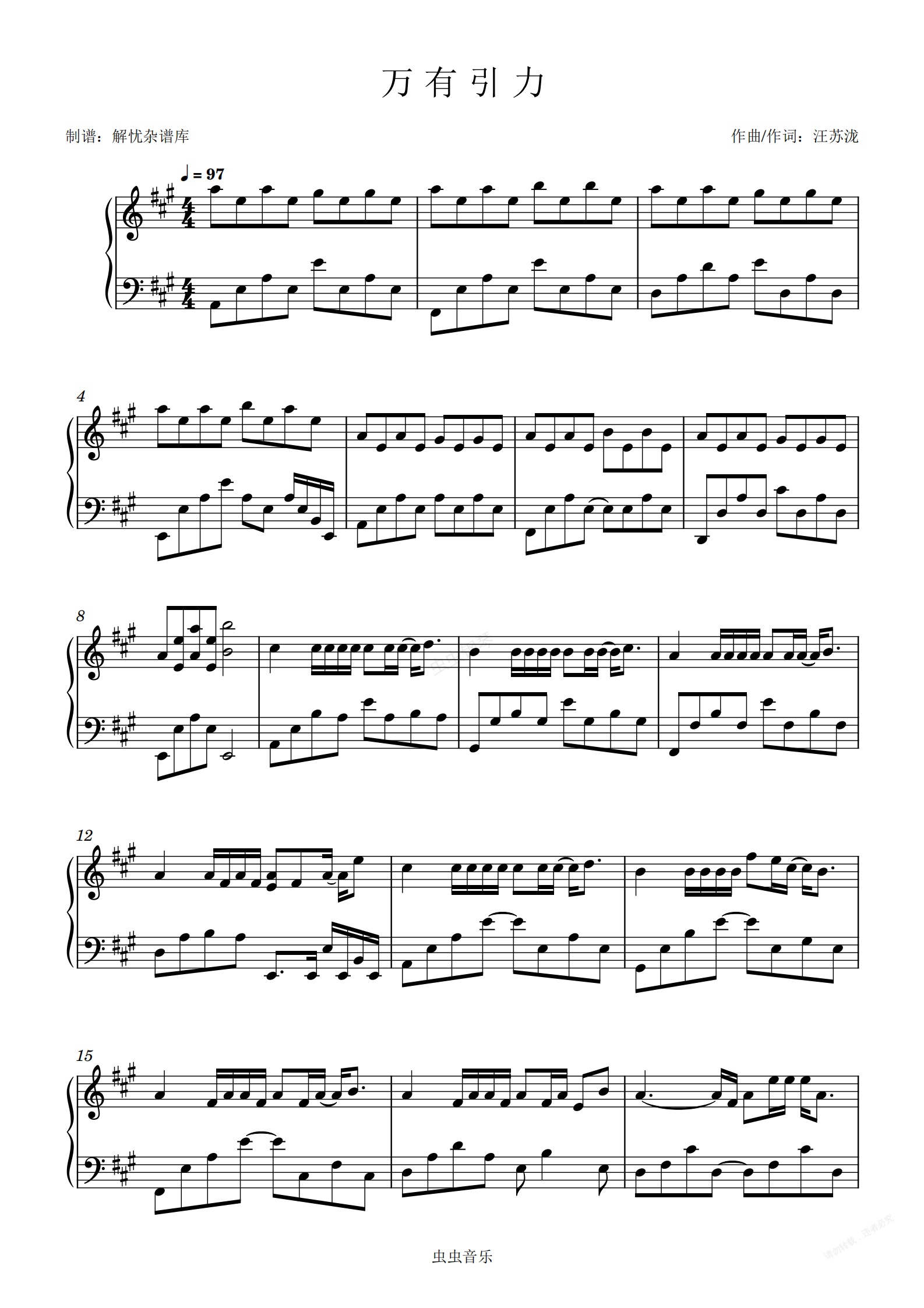 钢琴谱:万 有 引 力
