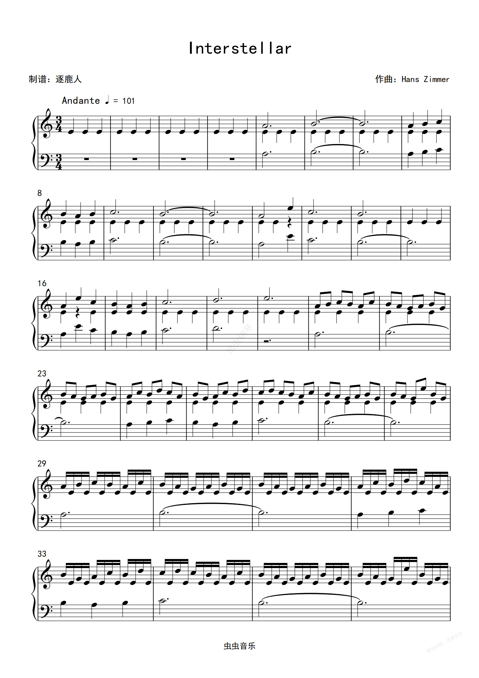 钢琴谱:星际穿越