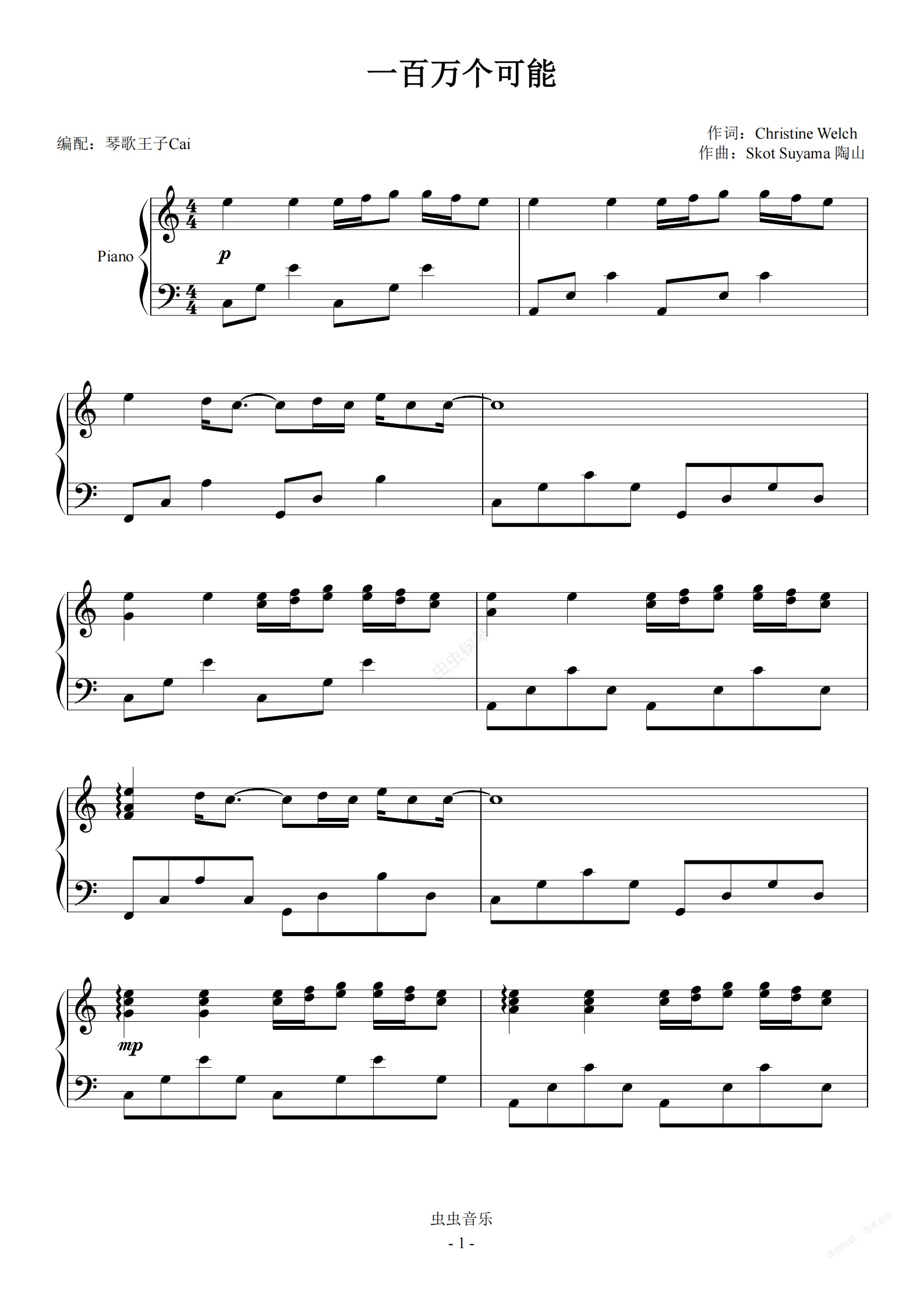 • 可不可以 (琴歌王子Cai钢琴版)C调