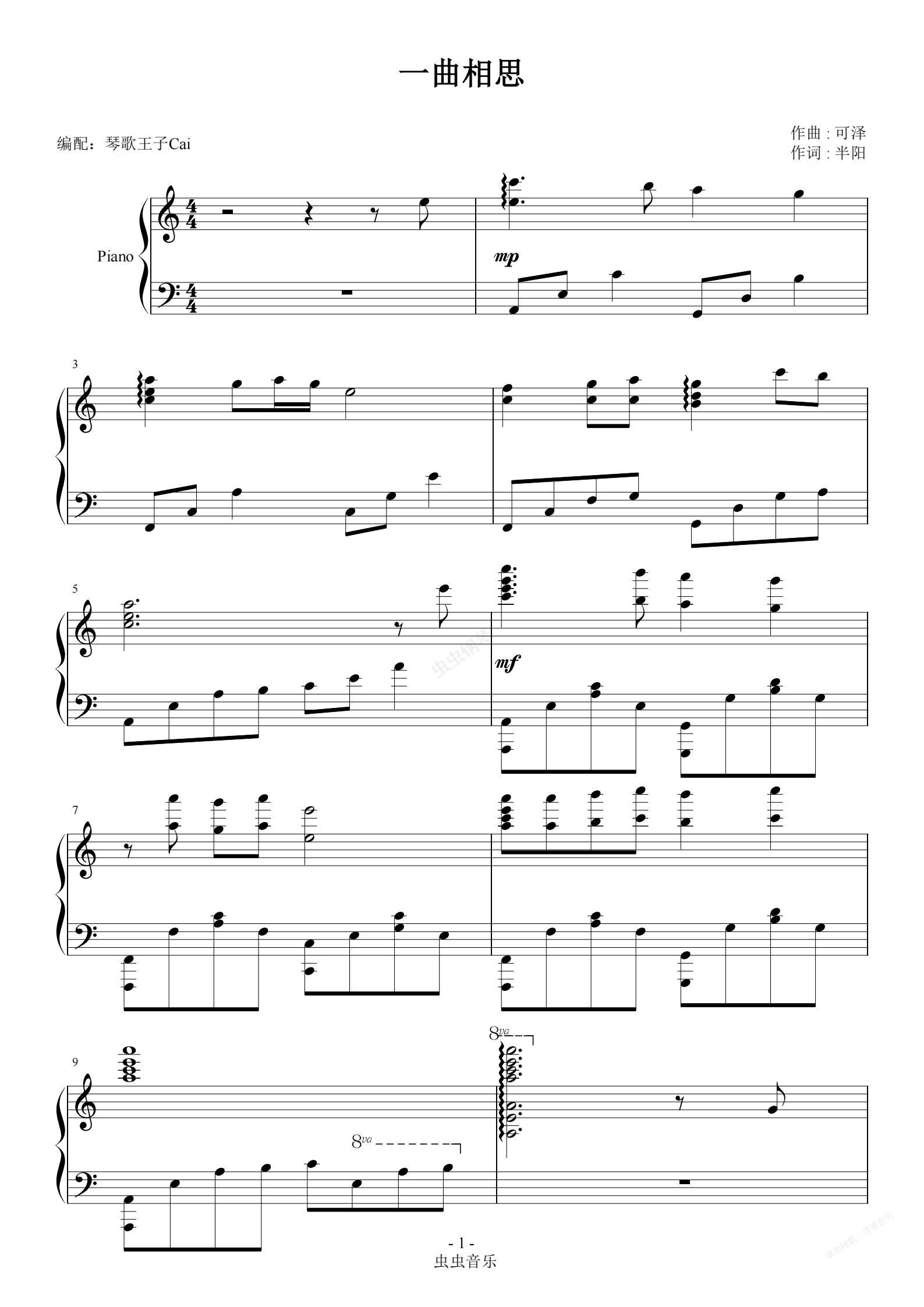 钢琴谱:一曲相思(琴歌王子Cai钢琴版)