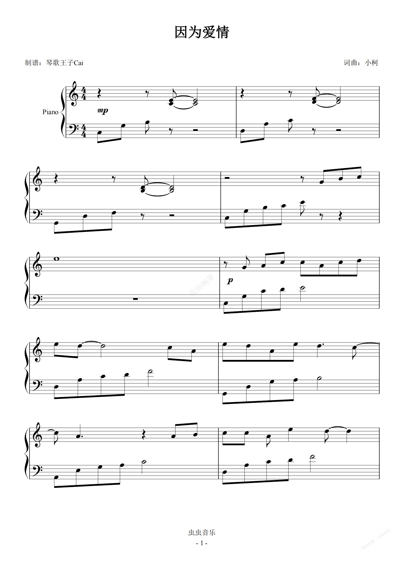 钢琴谱:因为爱情(琴歌王子Cai钢琴版)C调