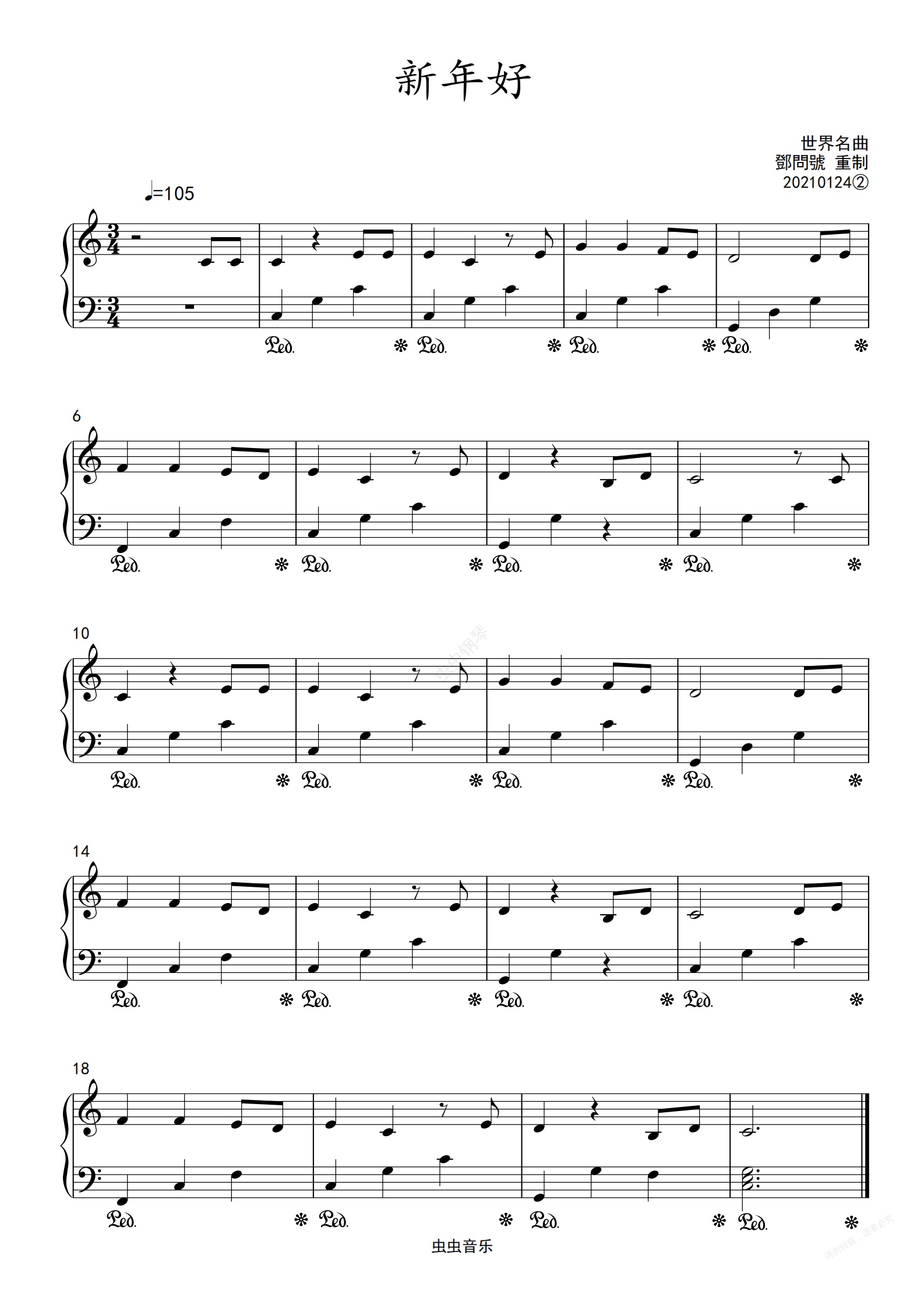 钢琴谱:C调《新年好》精简重制版