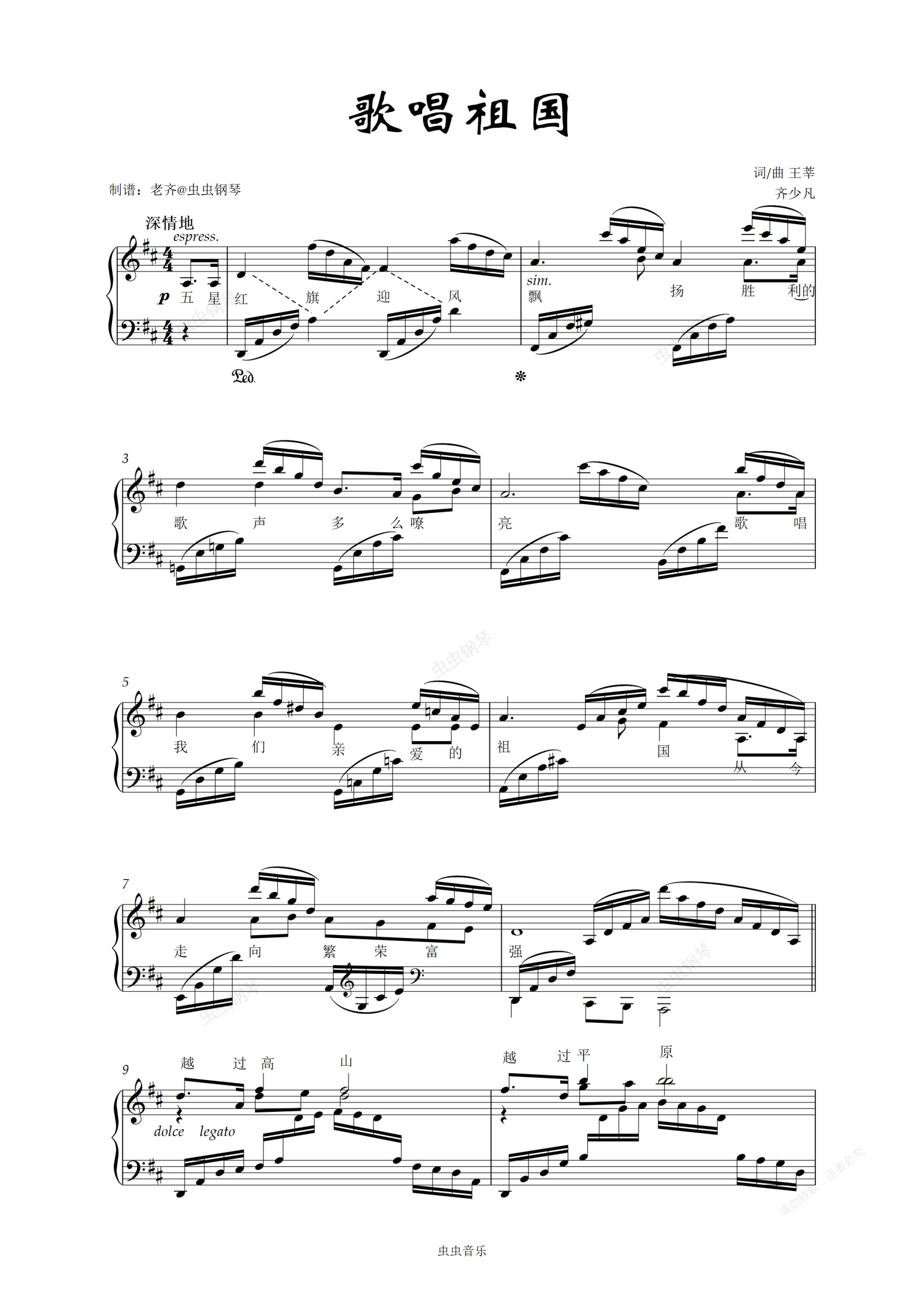 钢琴谱:【深情版】歌唱祖国 -钢琴独奏