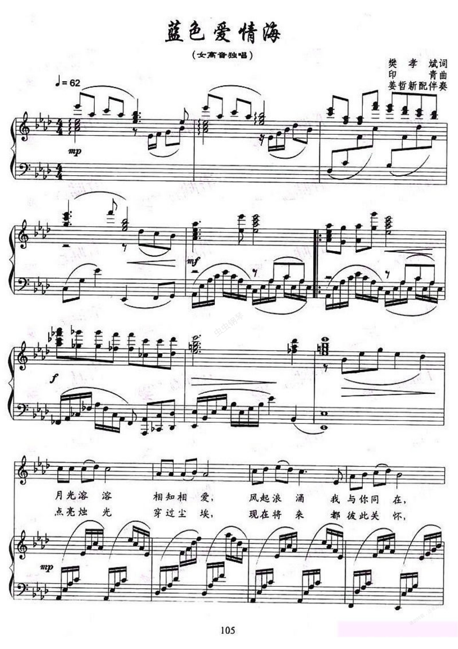 钢琴谱:蓝色爱琴海(声乐正谱)