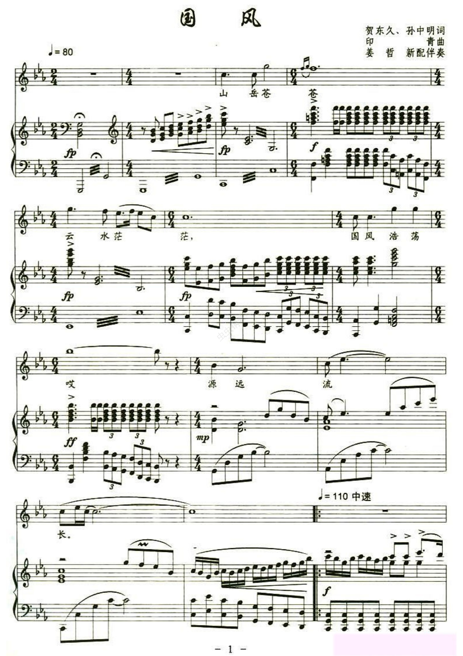 钢琴谱:国风(声乐正谱)