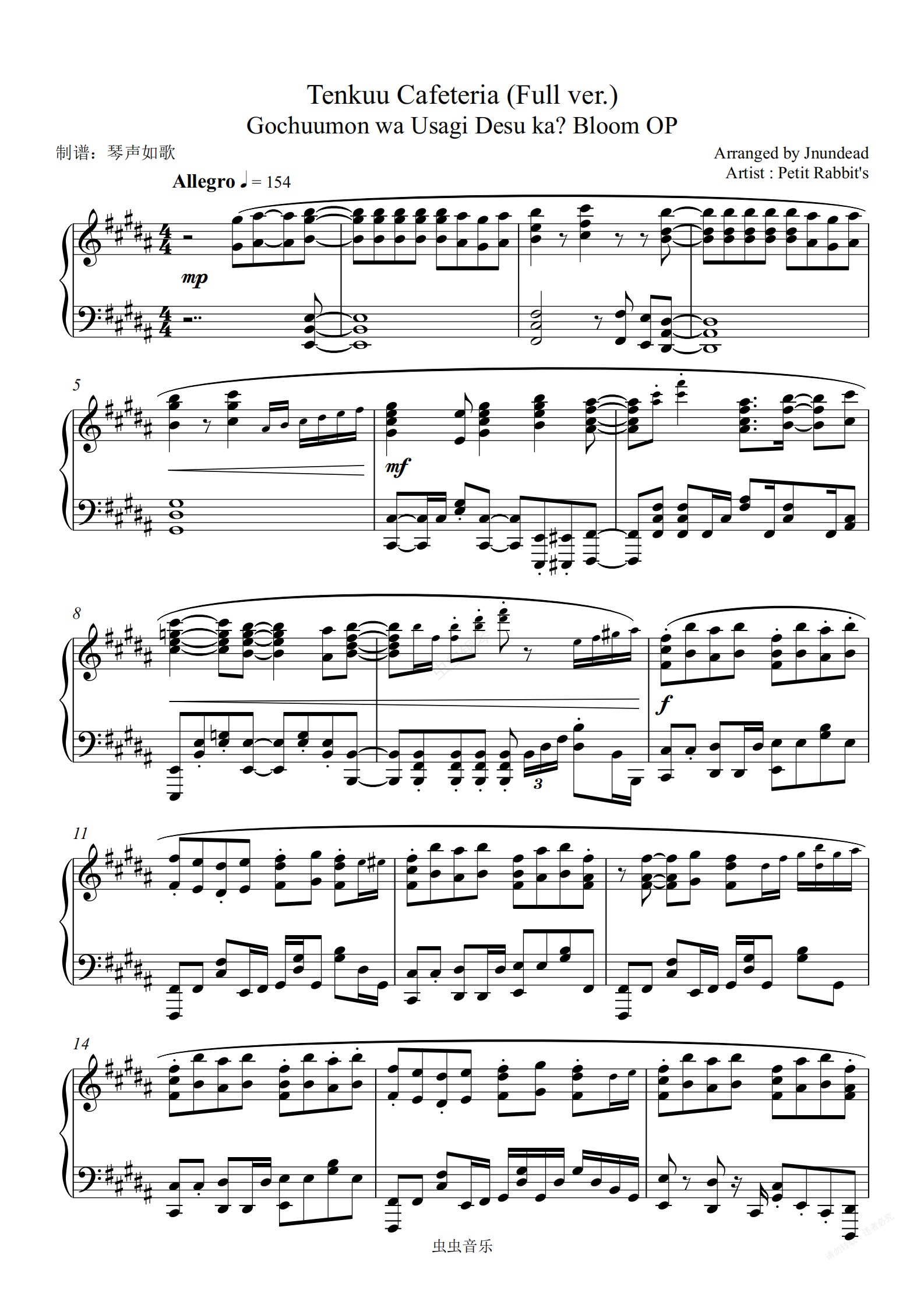 钢琴谱:天空カフェテリア-Tenkuu(超好听钢琴独奏】