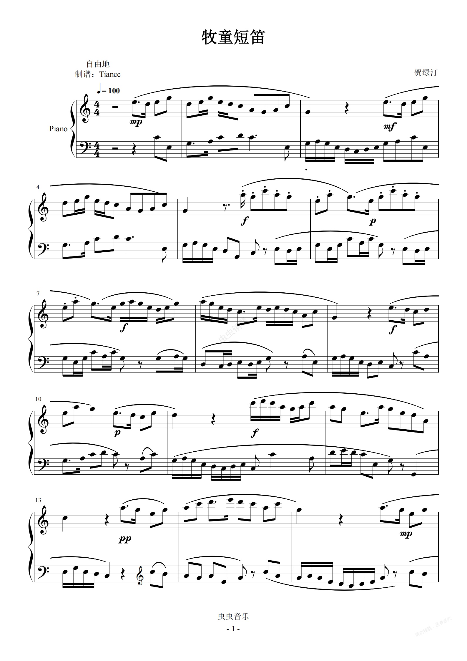 钢琴谱:《牧童短笛》必弹经典,299难度