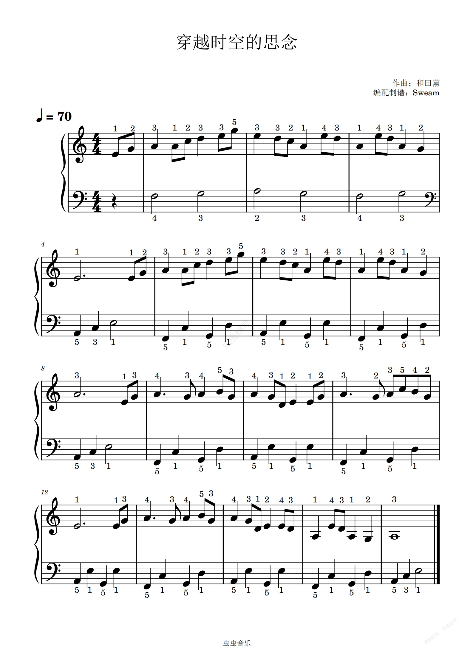 钢琴谱:穿越时空的思念-犬夜叉(新手入门精简C调版+详细指法)