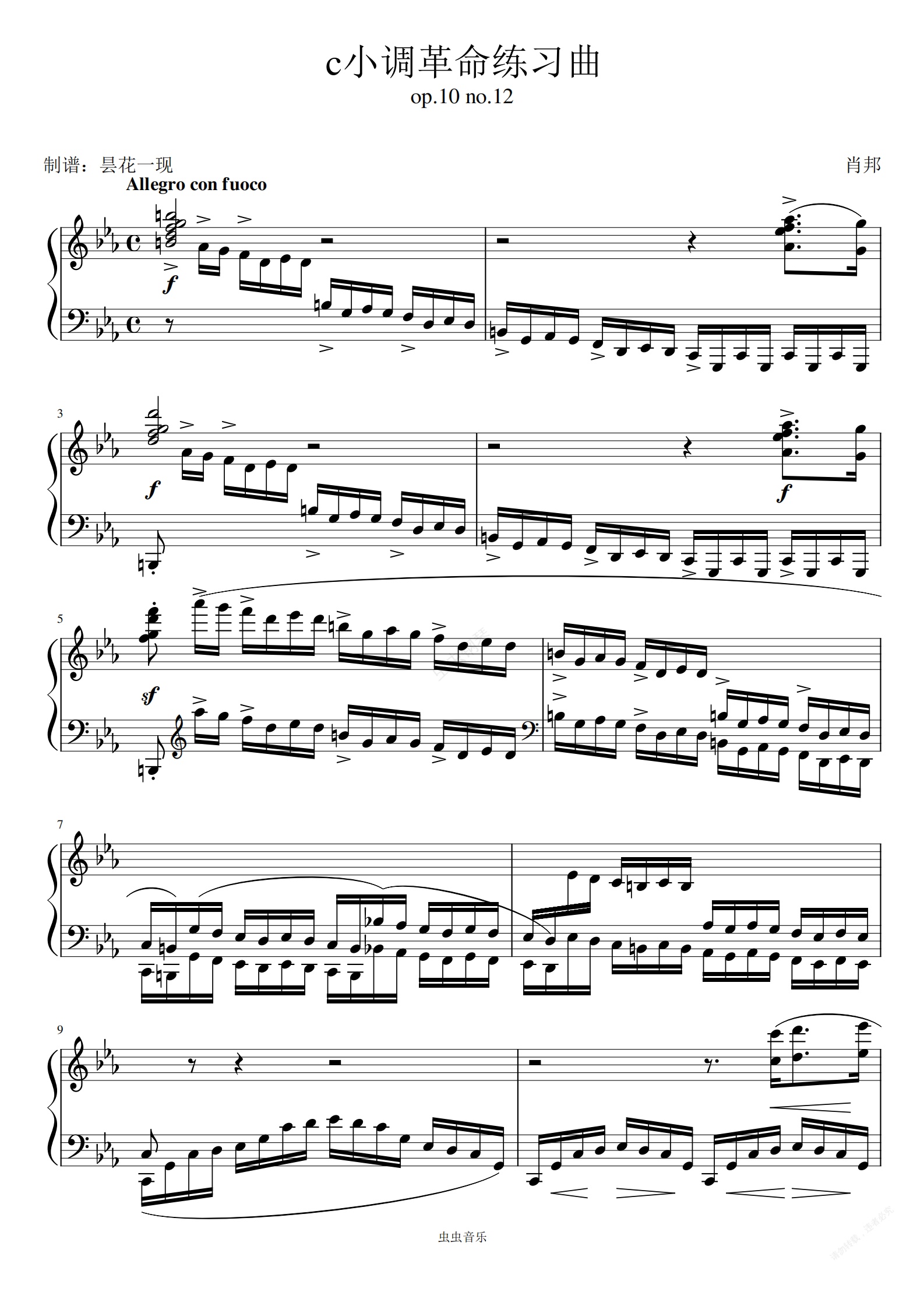 钢琴谱:c小调革命练习曲(op.10 no.12)