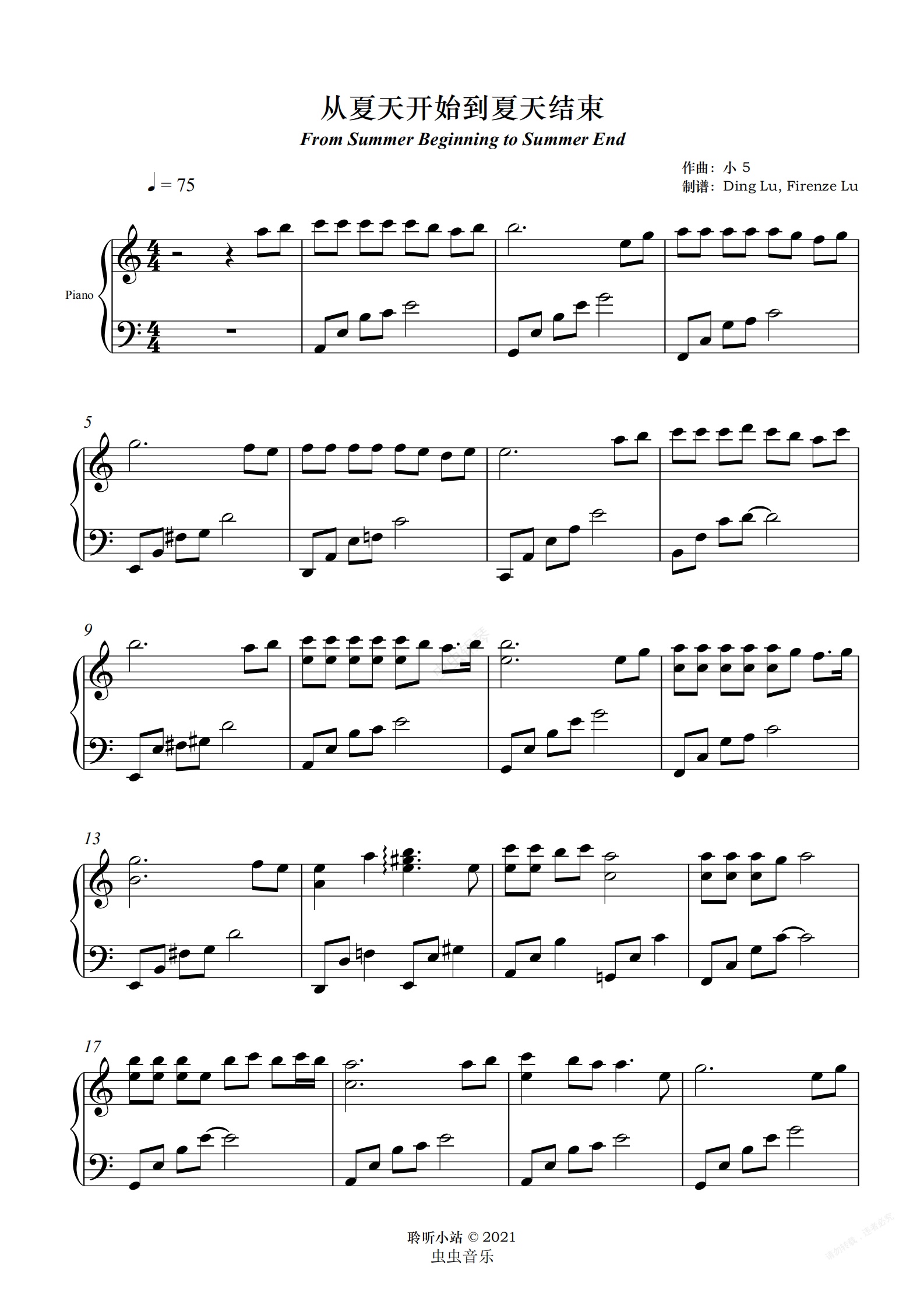 这首曲子由小 5 创作。小 5 是中国大陆 85 后网络歌手,籍贯浙江温州。他的作品在 2000 年代初的中国大陆网络上传唱开来,后来他还组建了名为 的乐队。这首曲子收录于他 2011 年的专辑《那时年少》。专辑里另有三首曲目运用了类似的旋律,分别是《在夏天的街角等你》、《有一点期待》和《全世界宣布爱你》,但不同的处理手法传递了各异的感受。《全世界宣布爱你》的演唱者、中国大陆 90 后歌手孙子涵(Niko)也将此曲收录于他 2011 年的专辑《一年一度的夏天》里。