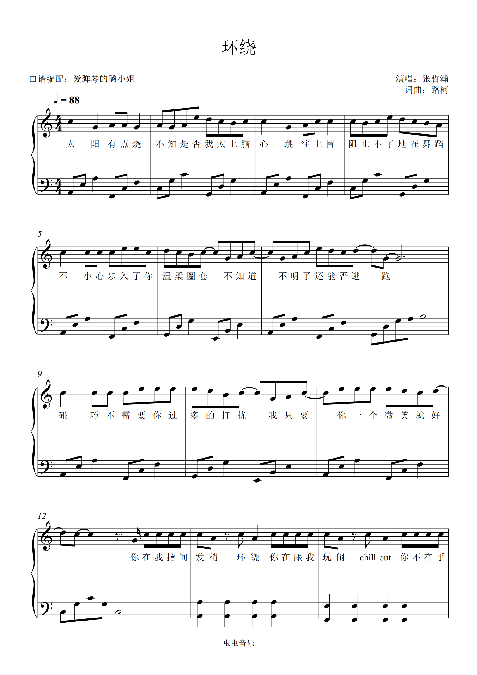 钢琴谱:环绕 - C调易上手简化版 - 附歌词