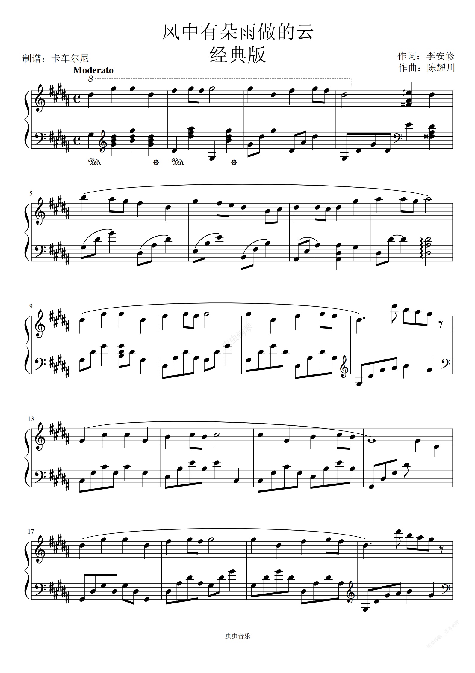 钢琴谱:风中有朵雨做的云 精编经典抒情版
