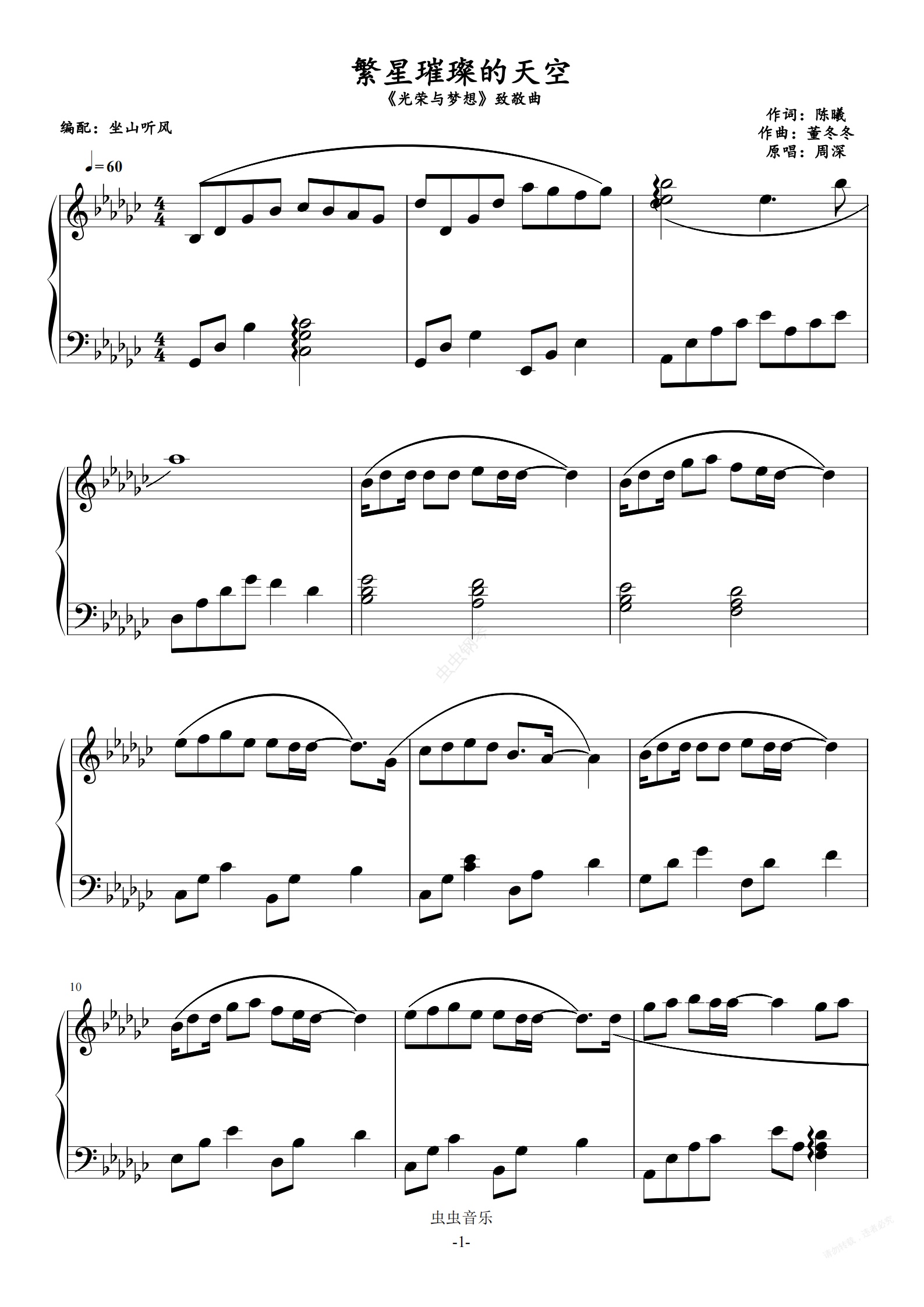 钢琴谱:【降G】繁星璀璨的天空——《光荣与梦想》致敬曲