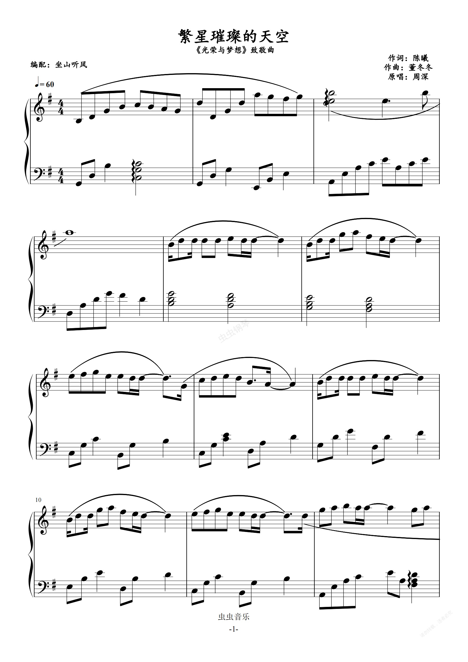 钢琴谱:【G调】繁星璀璨的天空——《光荣与梦想》致敬曲