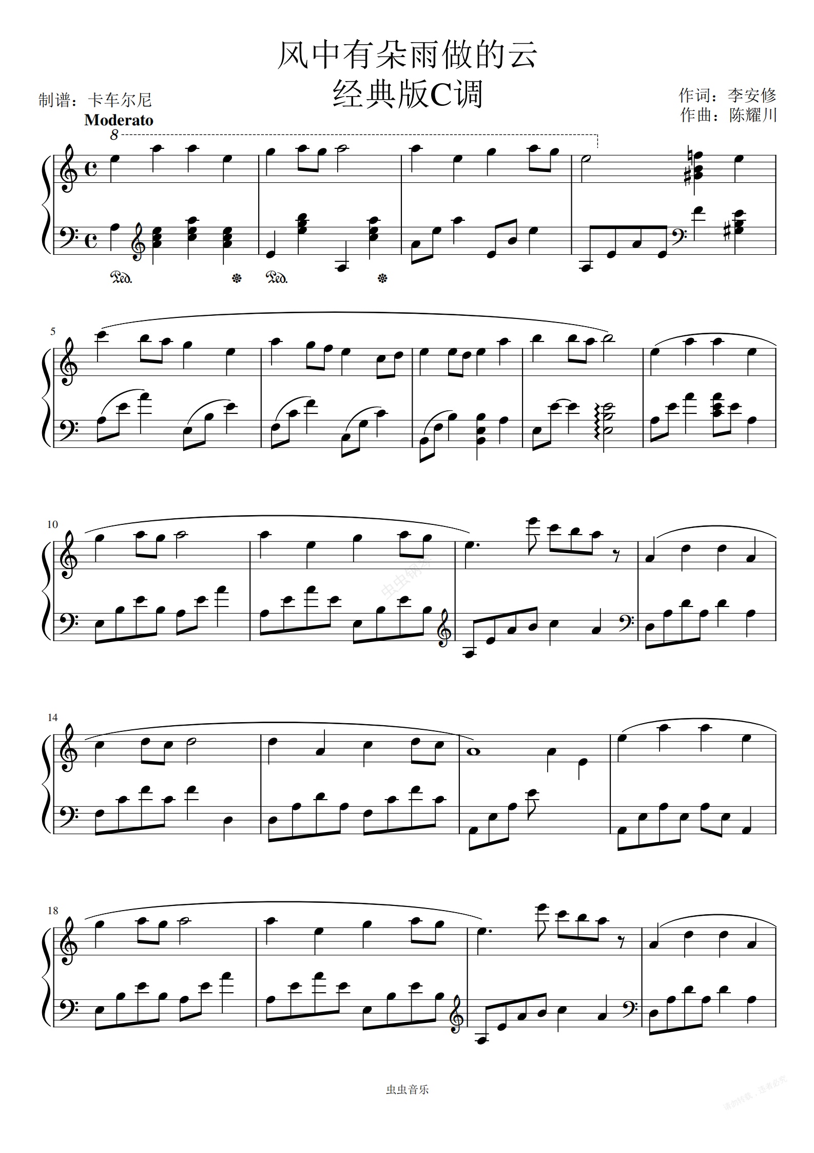 钢琴谱:风中有朵雨做的云 C调经典抒情版