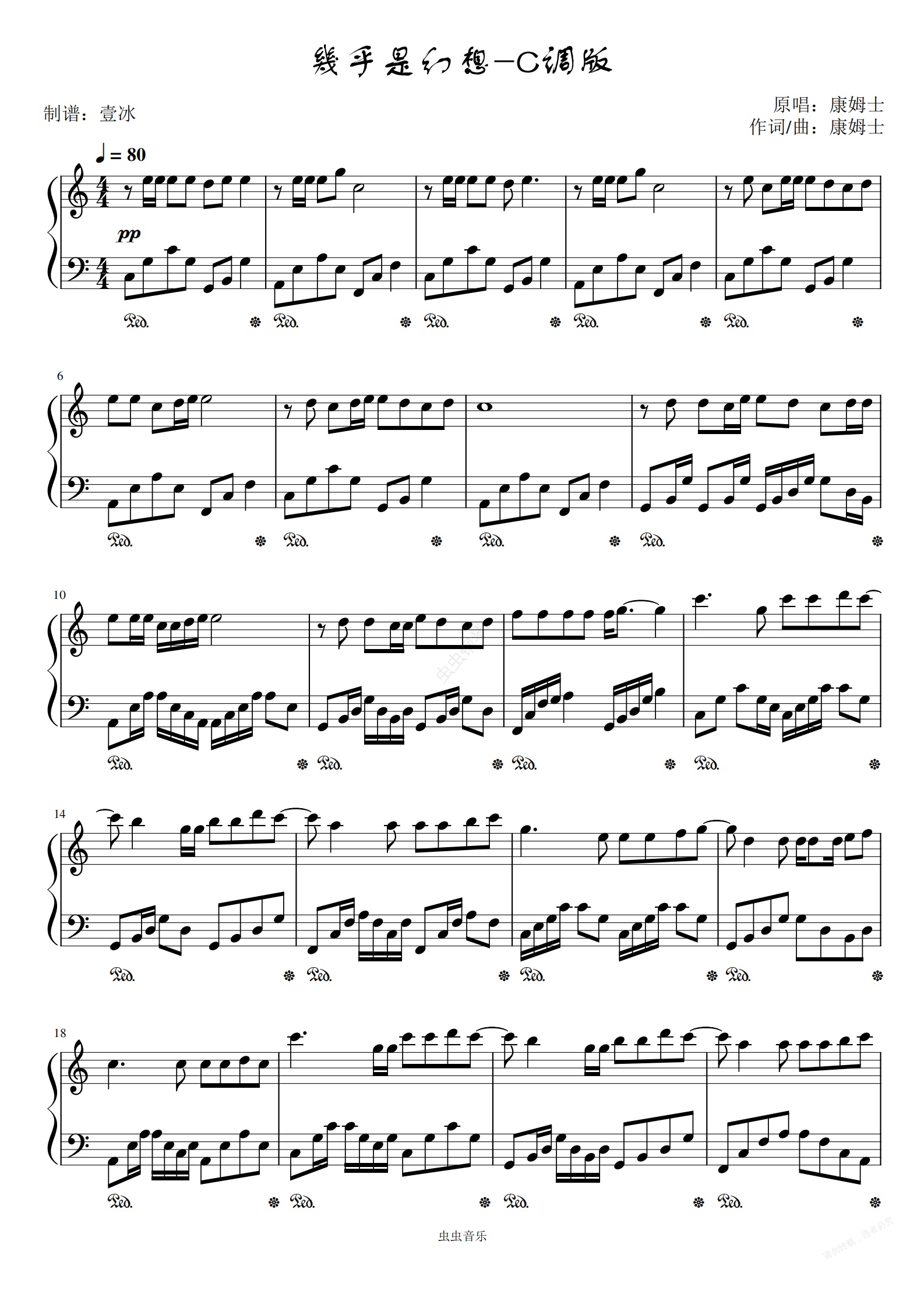 钢琴谱:幾乎是幻想//几乎是幻想//康姆士-C调简单易上手