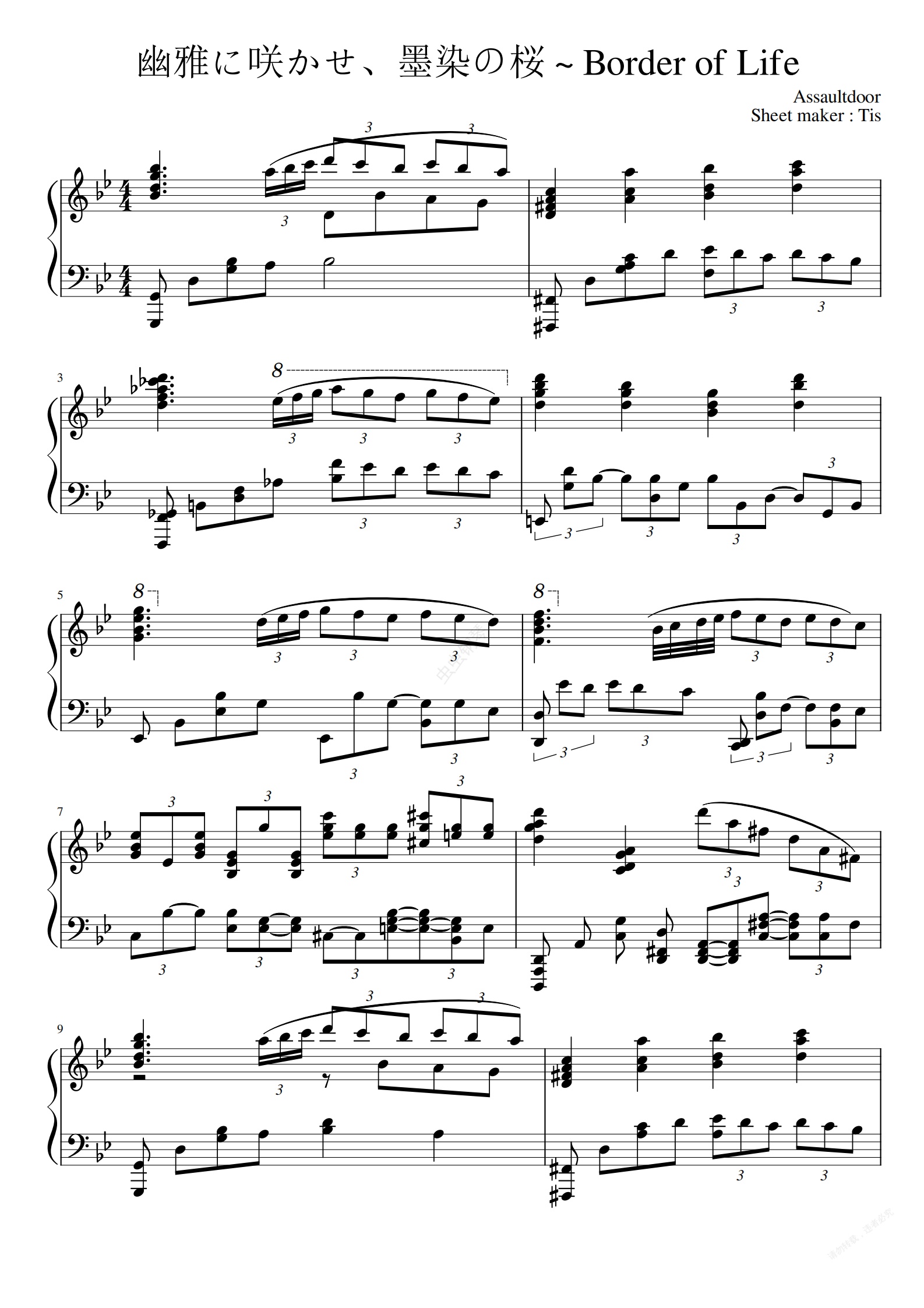钢琴谱:幽雅に咲かせ、墨染の桜 ~ Border of Life
