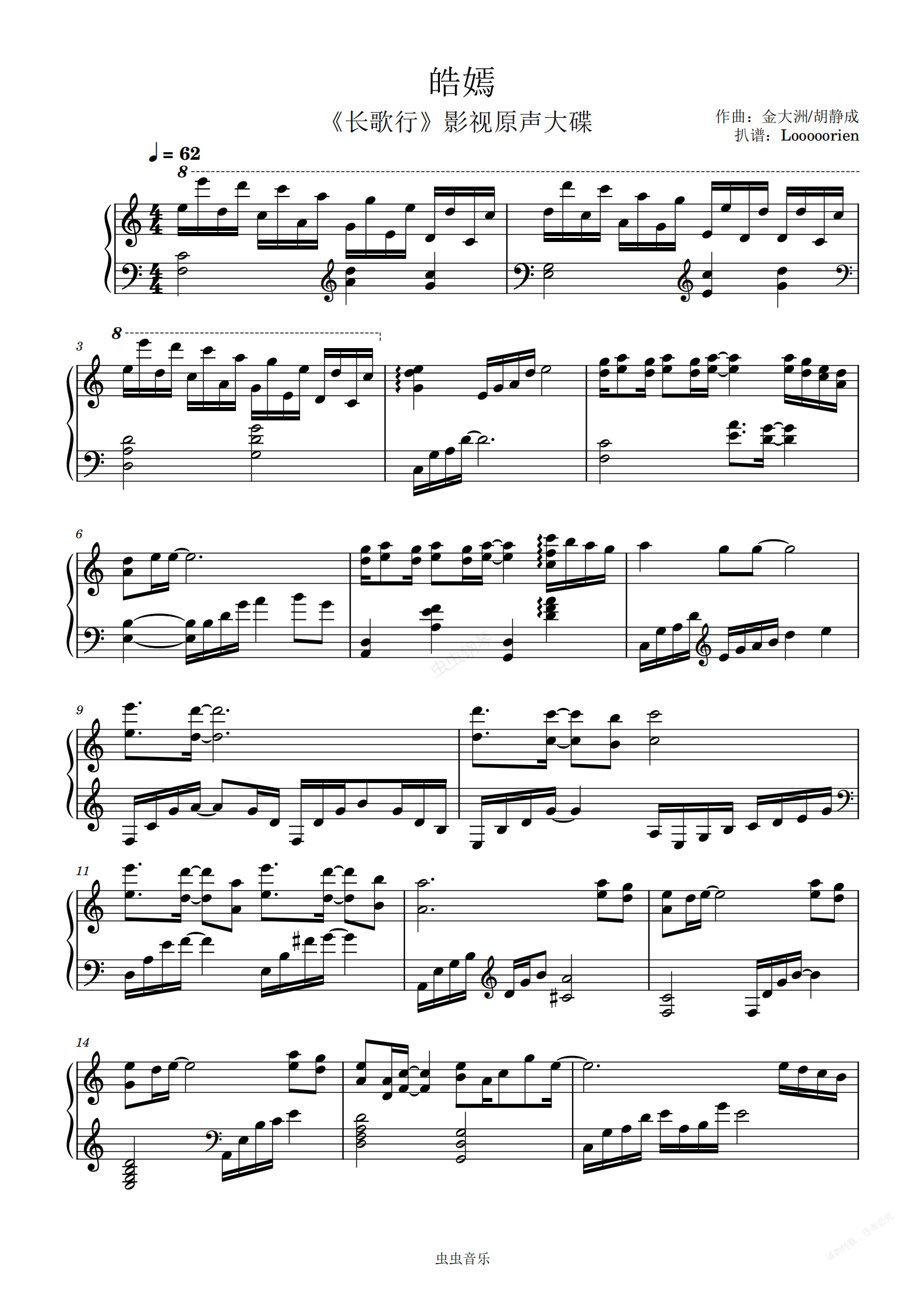 钢琴谱:《皓嫣》- 长歌行原声配乐 钢琴独奏近完美复刻版