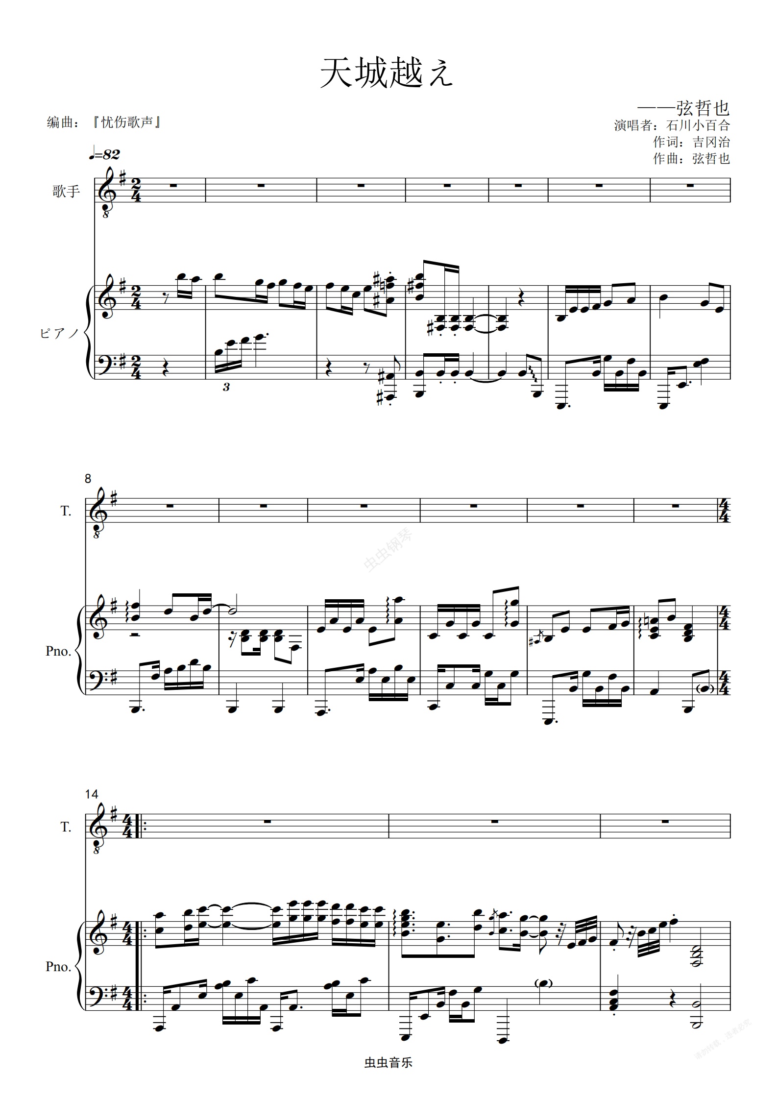 钢琴谱:【日本演歌】天城越え(天城越)男版G调——『忧伤歌声』