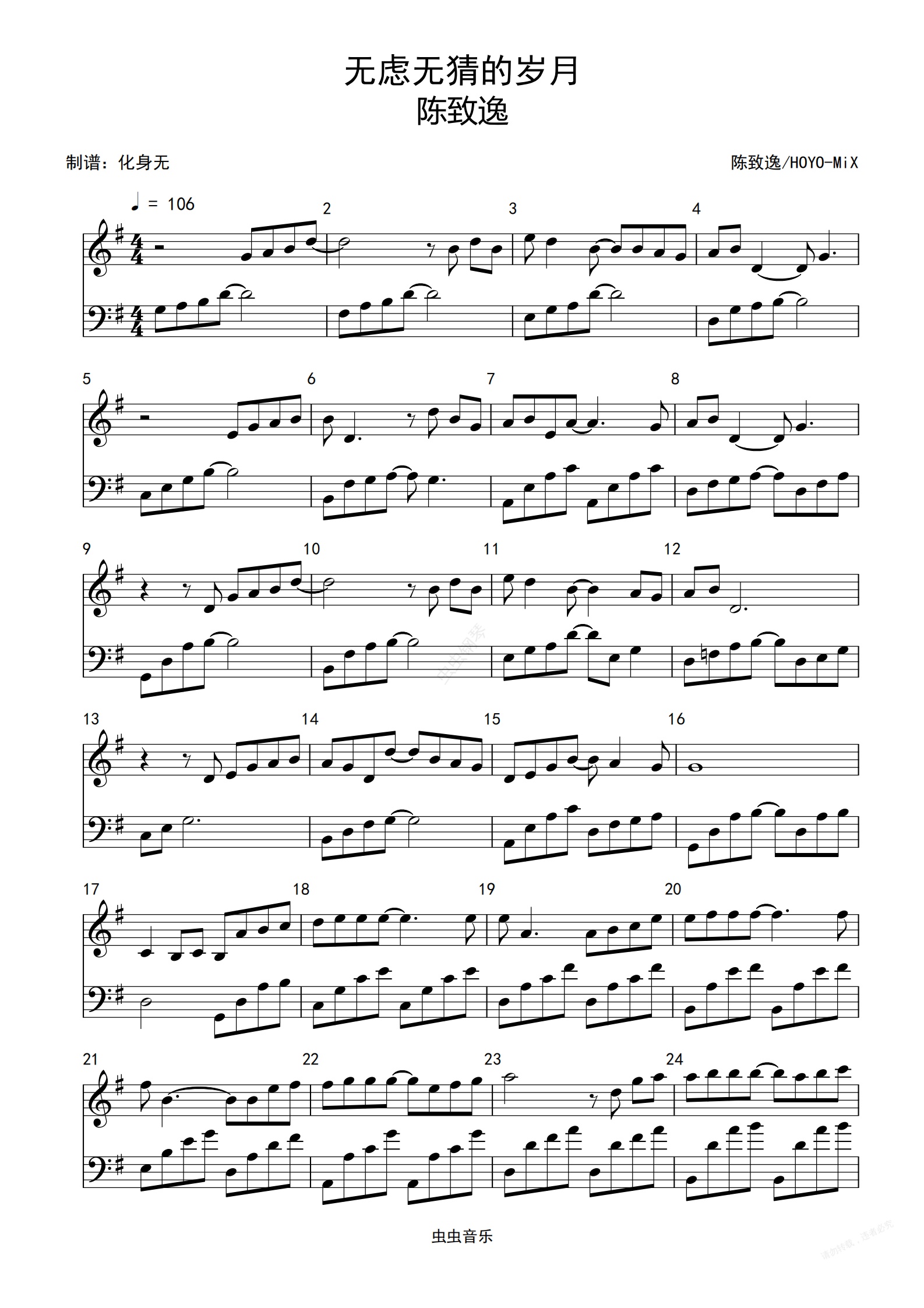 钢琴谱:无虑无猜的岁月 可莉EP音乐 炎夏炽宝之踪BGM