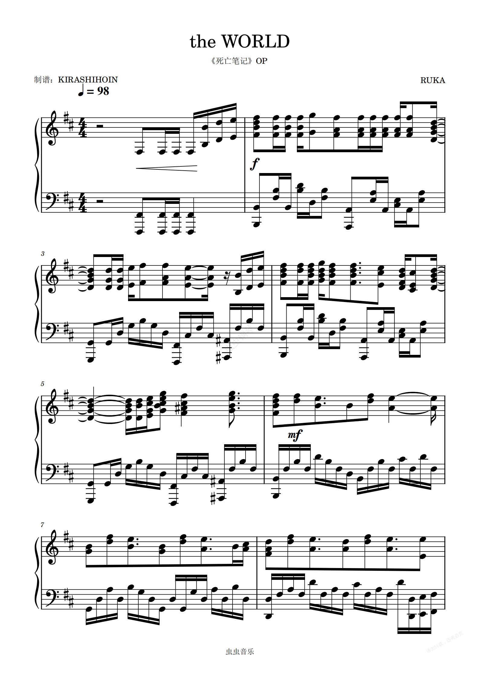 钢琴谱:the WORLD(《死亡笔记》OP)