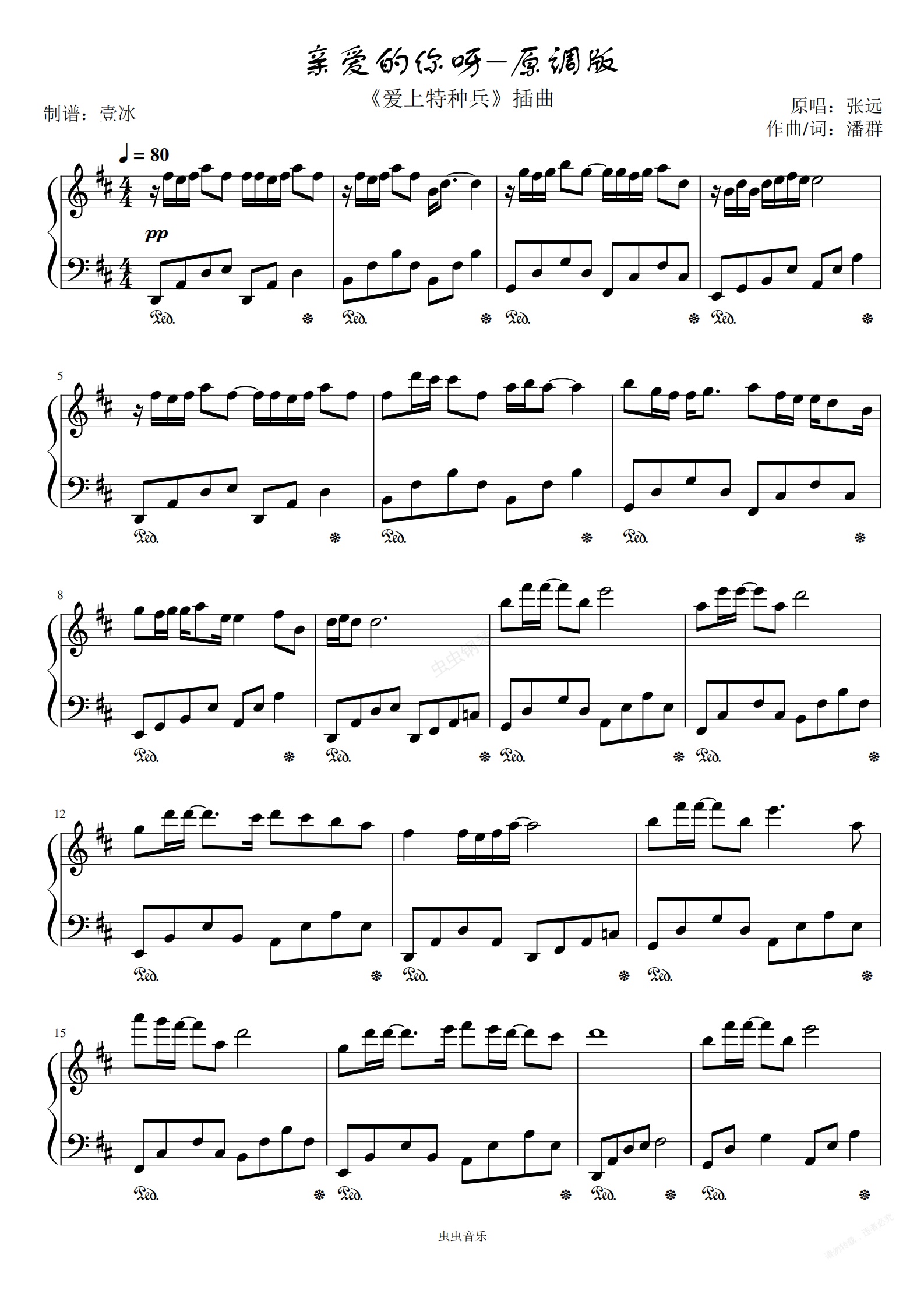 钢琴谱:亲爱的你呀//《爱上特种兵》-原调版