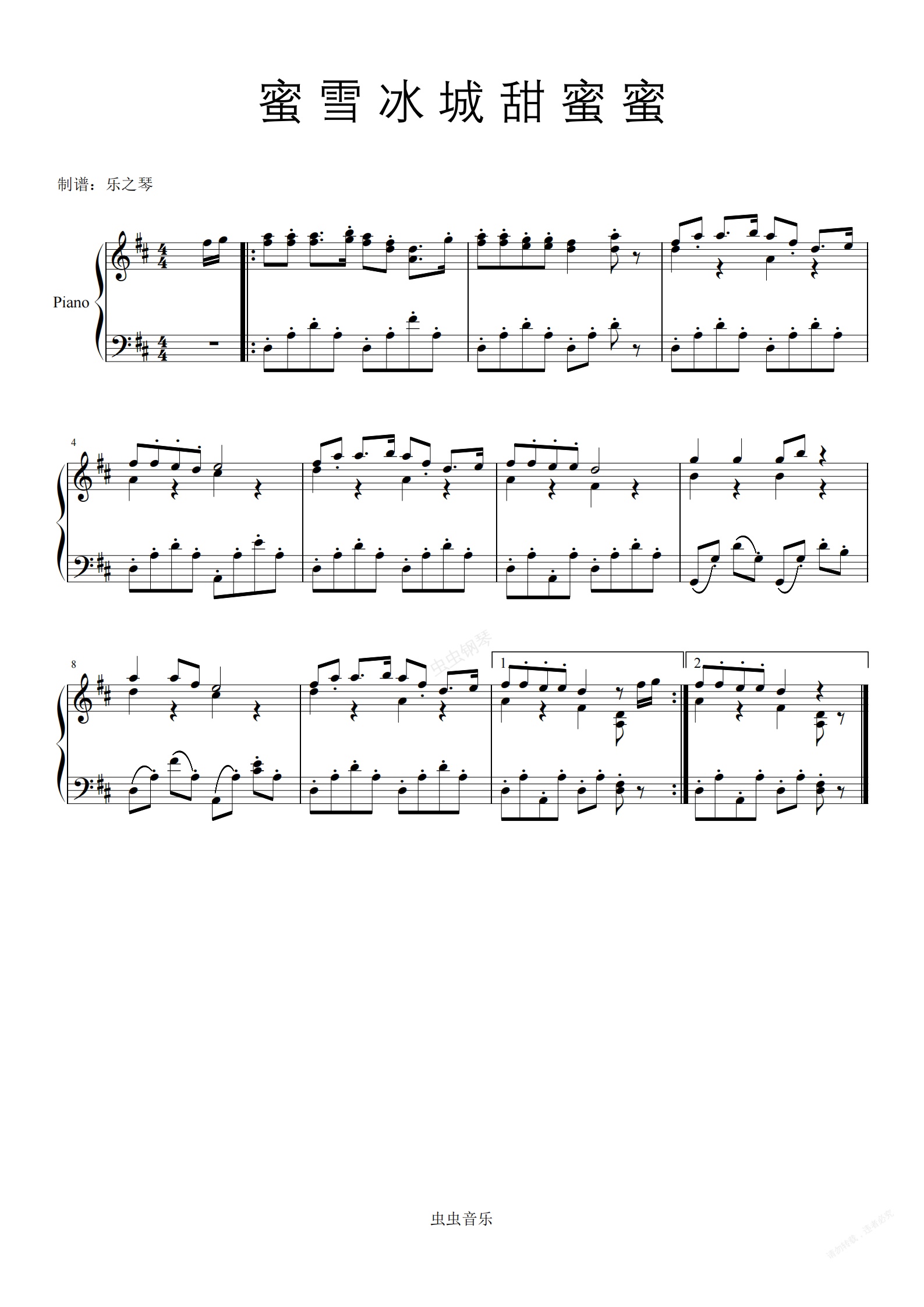 钢琴谱:蜜雪冰城甜蜜蜜-钢琴版