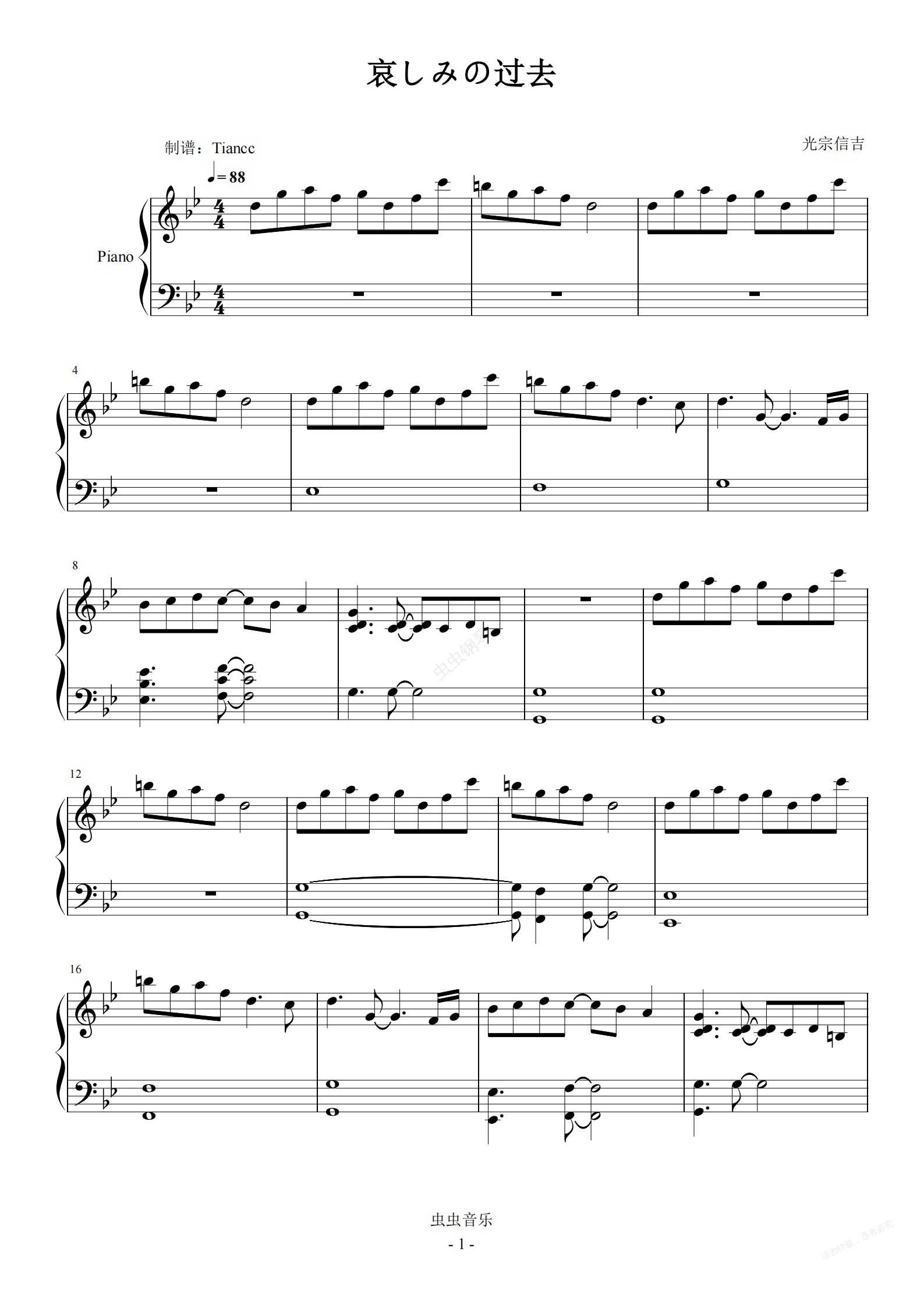 钢琴谱:《悲伤的过去》游戏王超燃组曲,拜厄难度,最简单的一首~