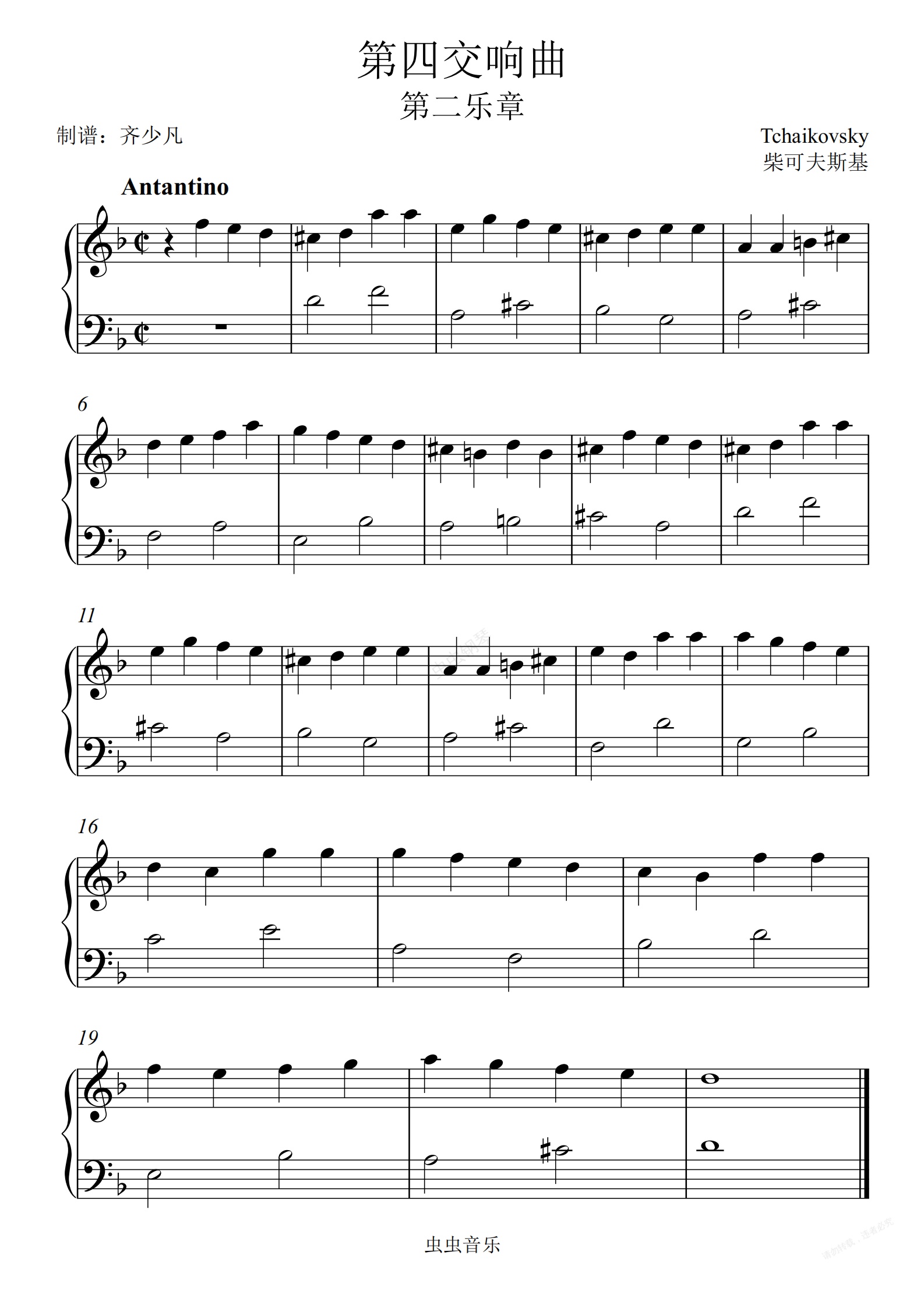 钢琴谱:【初学者】柴可夫斯基第四交响曲第二乐章