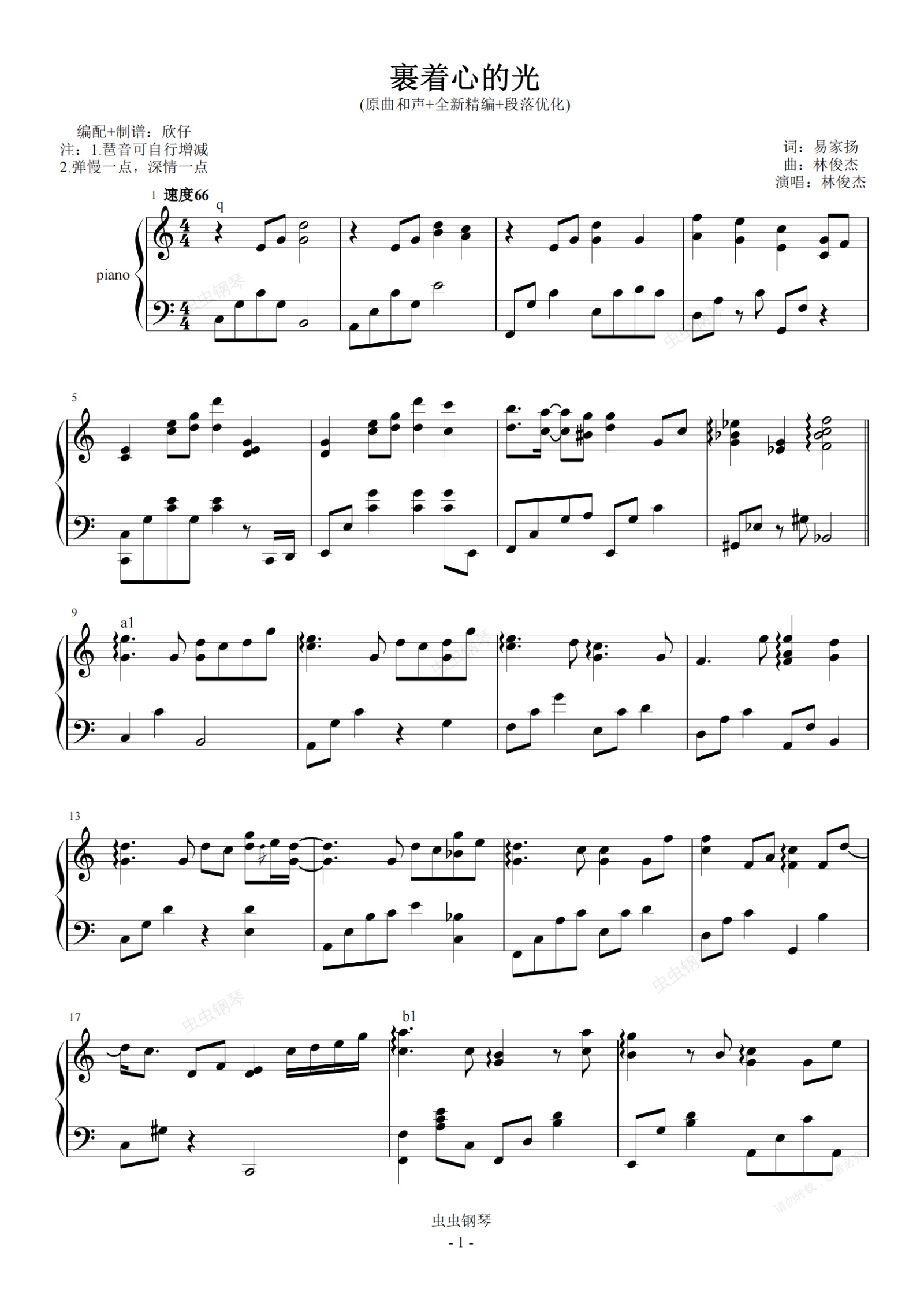 钢琴谱:林俊杰-C《裹着心的光》(原曲和声+全新精编+段落优化)