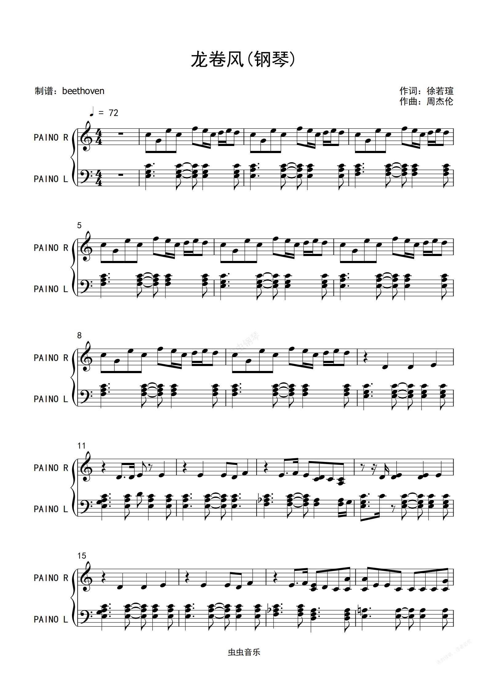 钢琴谱:《龙卷风》周杰伦完美独奏