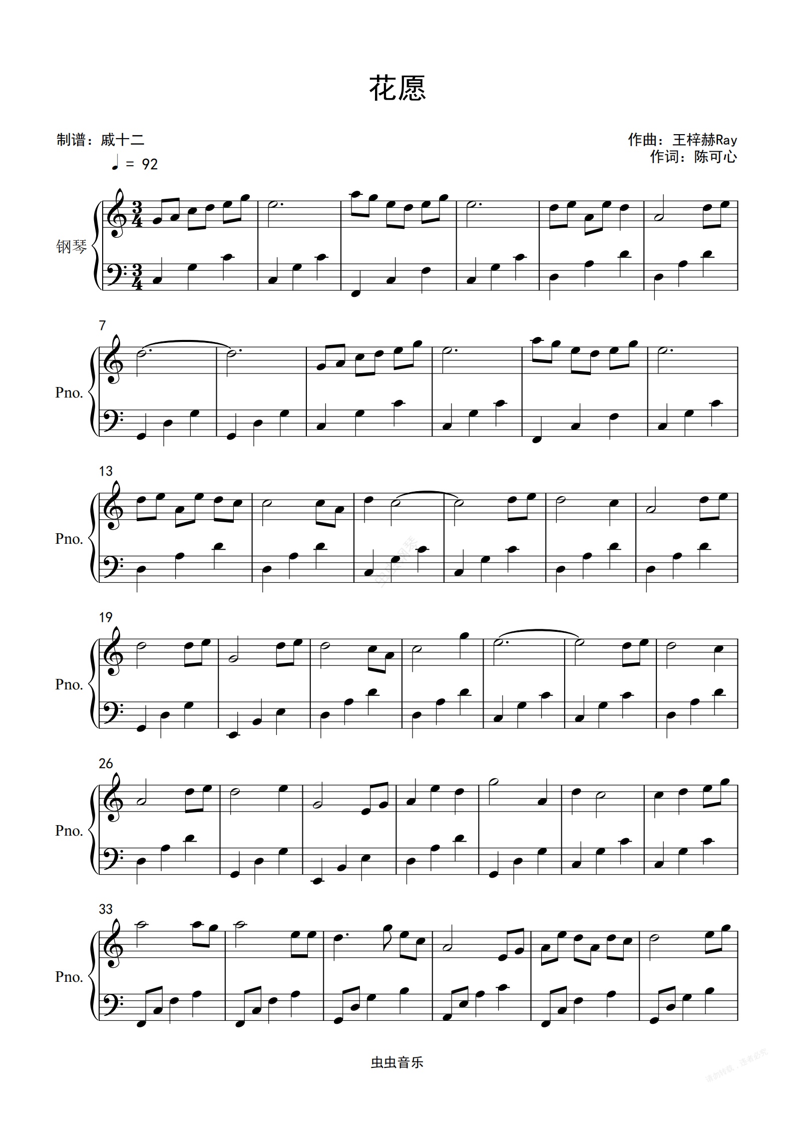 钢琴谱:花愿《锦心似玉》的插曲-C调简单版