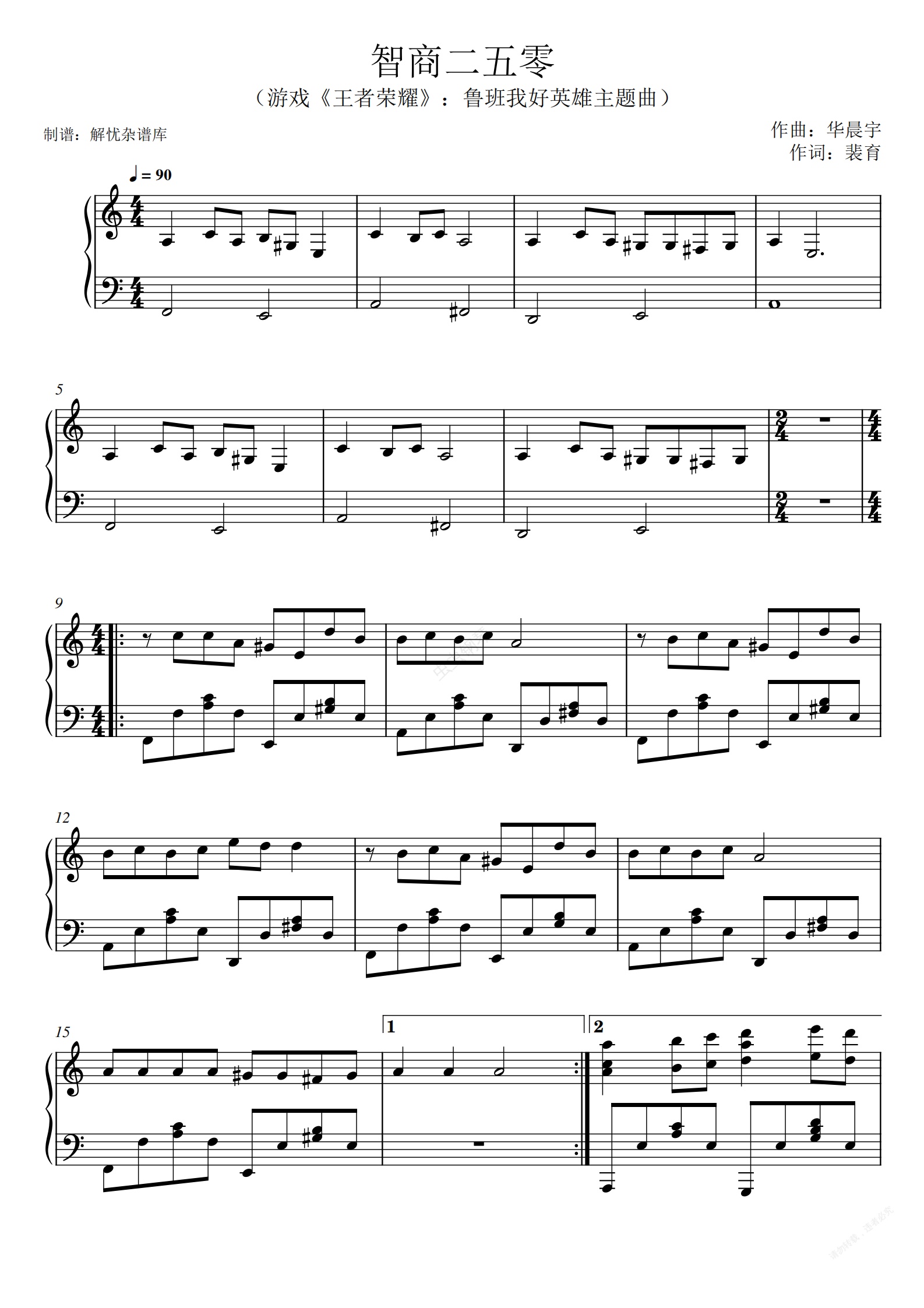 钢琴谱:智商二五零《王者荣耀》:鲁班我好英雄主题曲