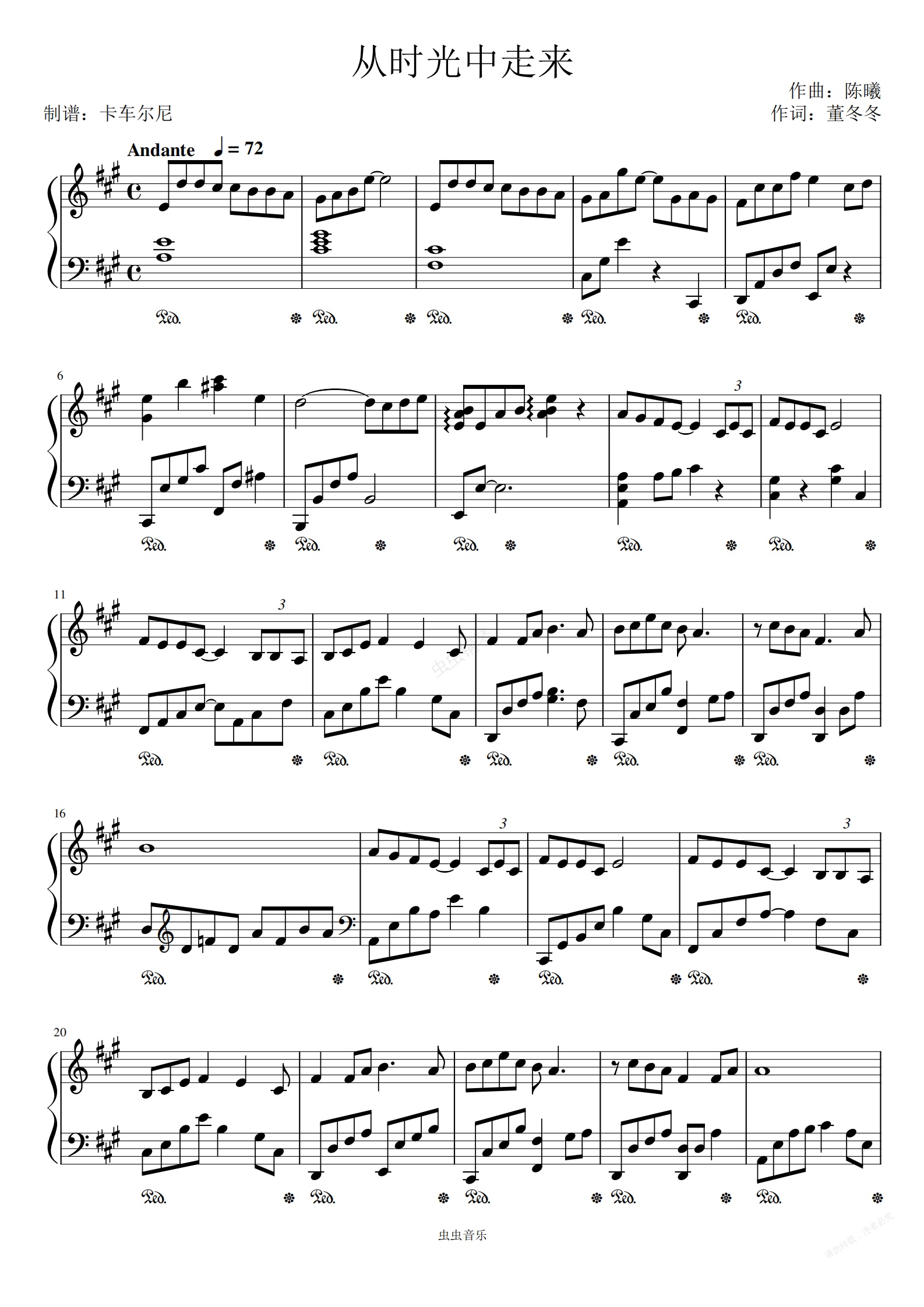 钢琴谱:从时光中走来 演奏版,阿云嘎演唱
