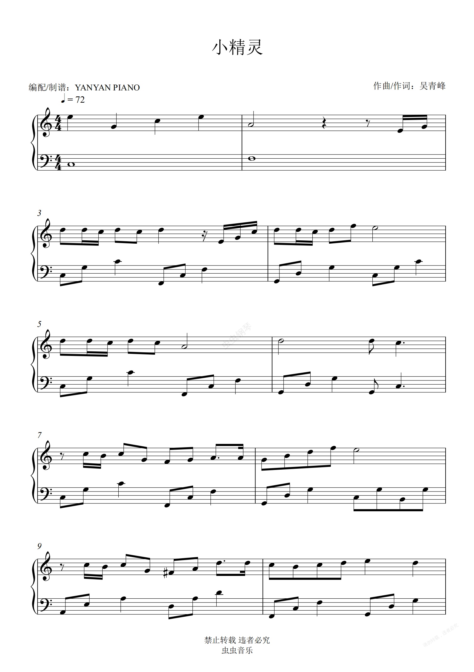 钢琴谱:【小精灵】TFBOYS