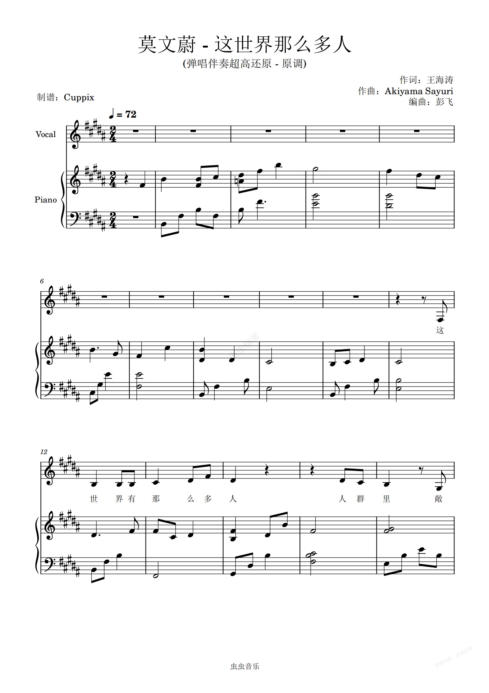 钢琴谱:《这世界那么多人》弹唱伴奏附词-超高还原(莫文蔚 我要我们在一起)