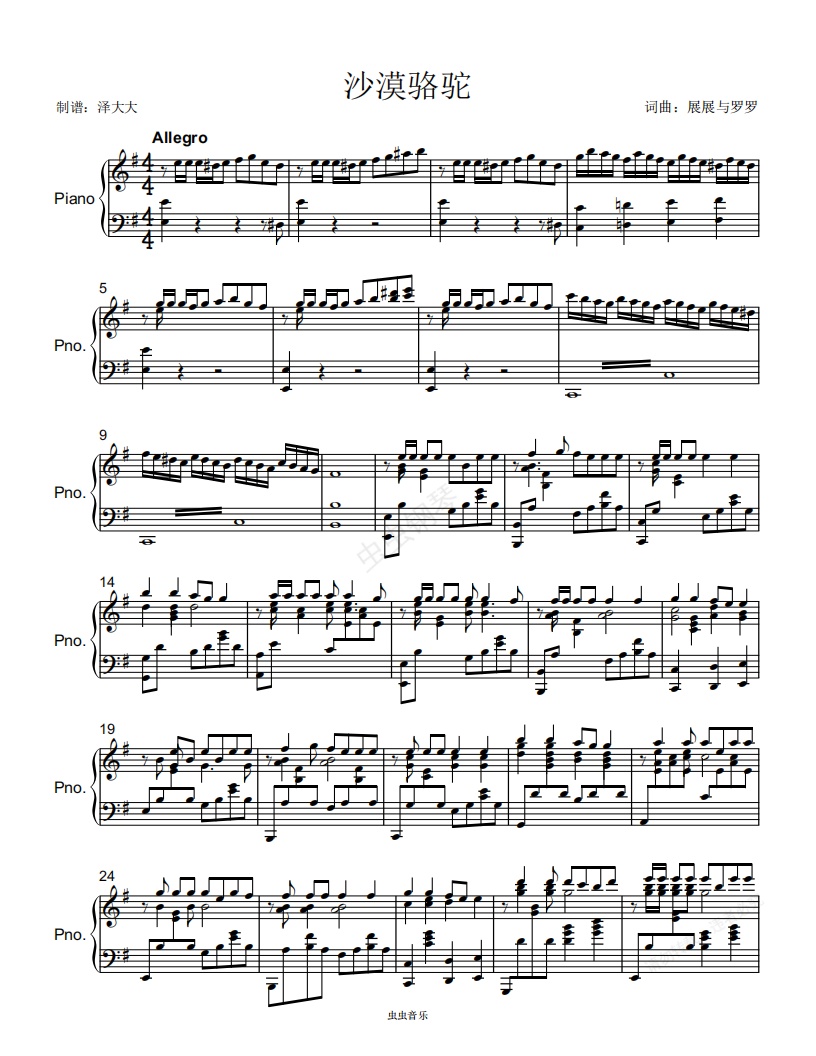 钢琴谱:沙漠骆驼