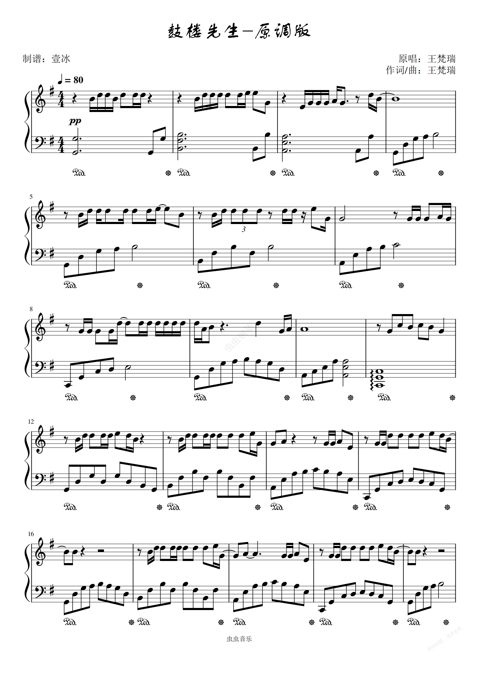 钢琴谱:鼓楼先生//王梵瑞-原调版简单易上手