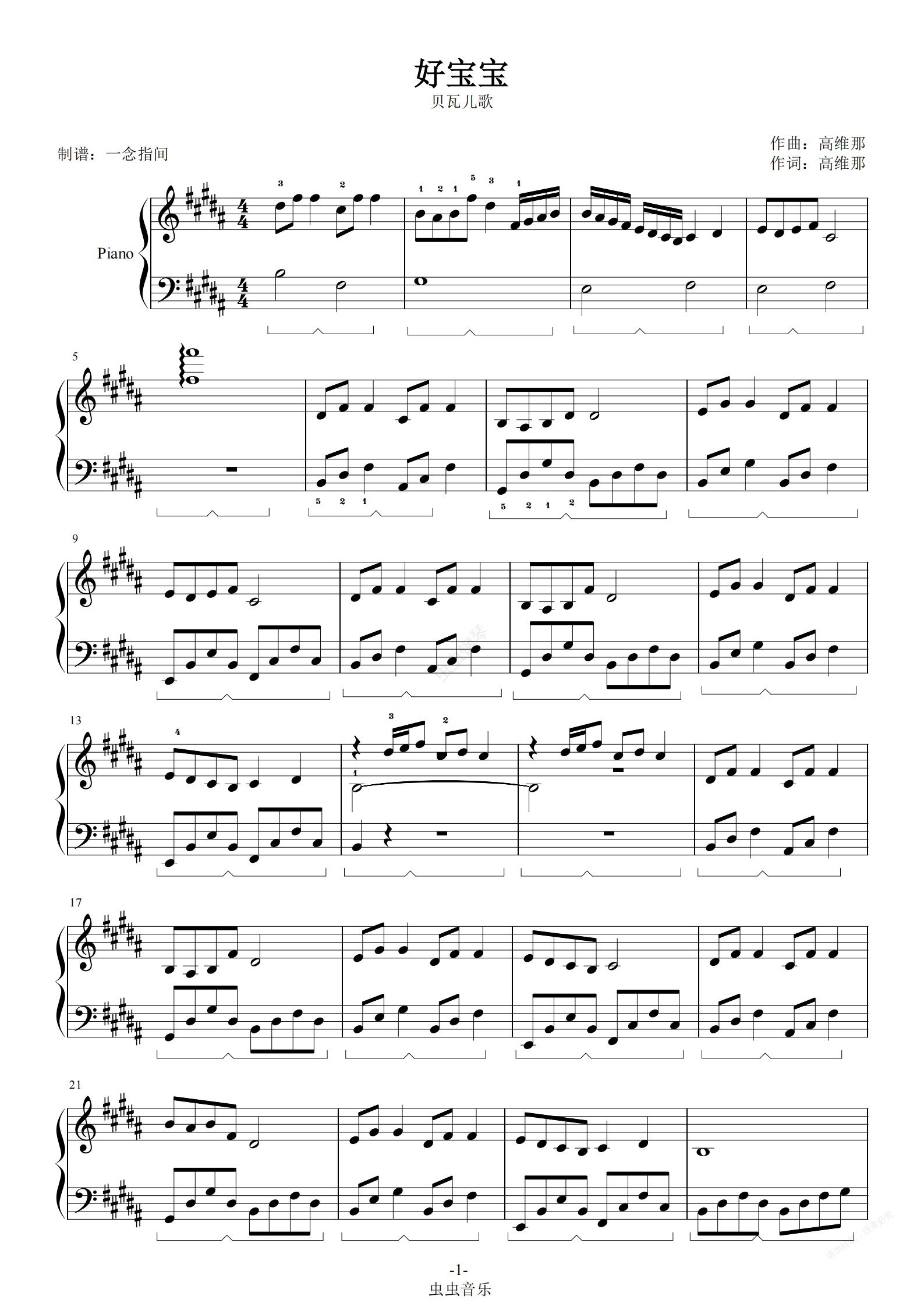 制谱:一念指间 《好宝宝》是歌手高维那演唱的一首歌曲, 贝瓦儿歌。节奏欢快优美很适合钢琴初学者进阶上手,也非常适合钢琴学生的拓展乐曲。