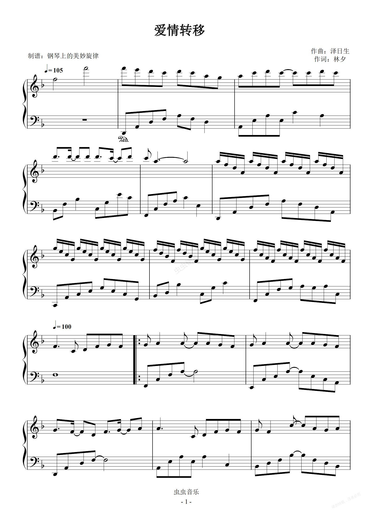 钢琴谱:爱情转移(富士山下)简易版 陈奕迅