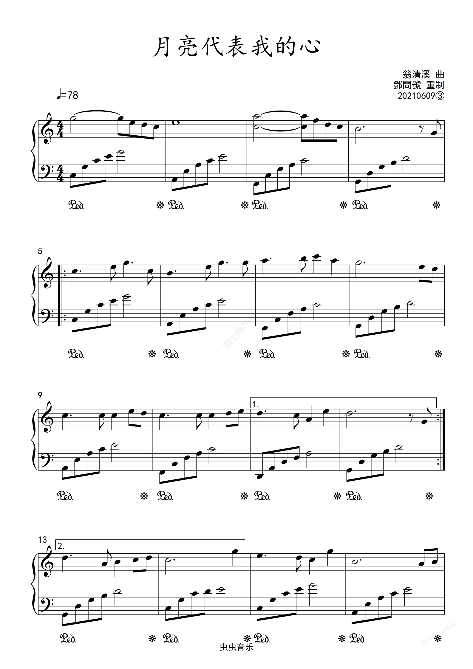 钢琴谱:《月亮代表我的心》精简段落重制版
