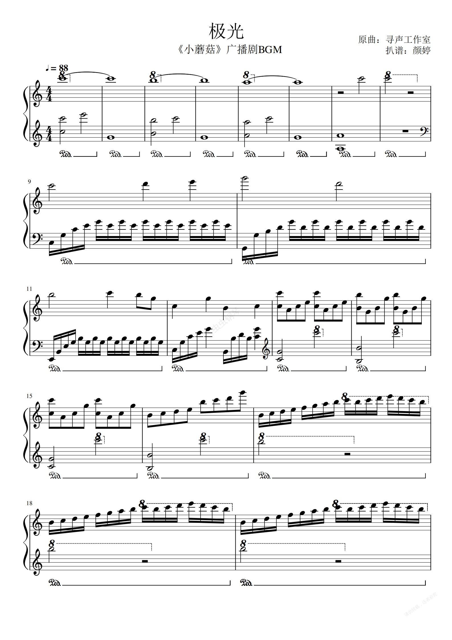 钢琴谱:《极光》——《小蘑菇》广播剧BGM