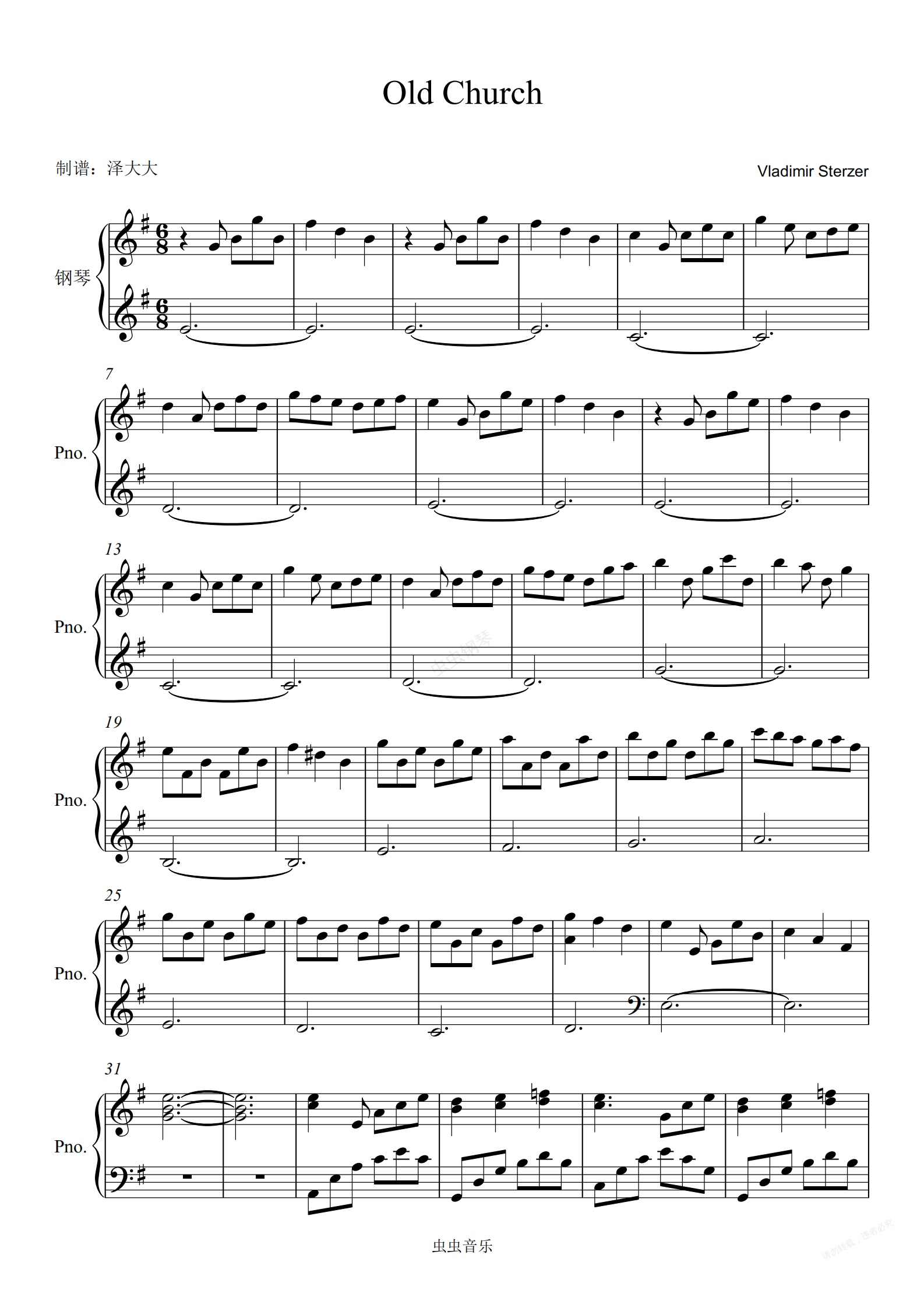 钢琴谱:Old Church【冥想钢琴独奏】泽大大