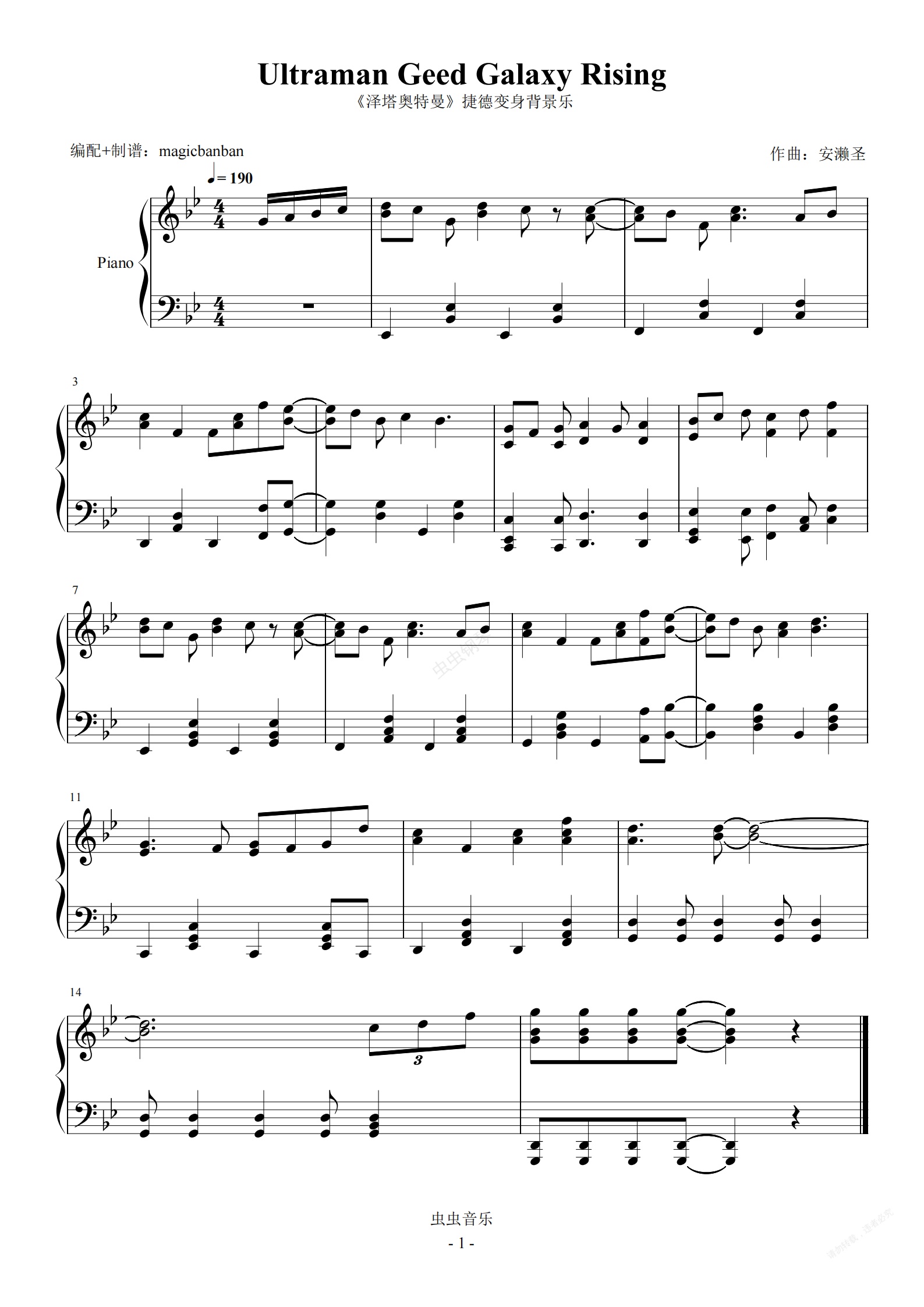 钢琴谱:捷德奥特曼Galaxy Rising变身BGM
