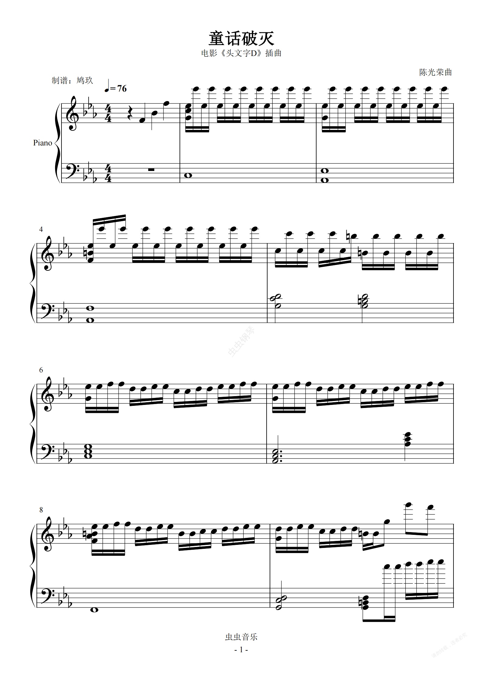 钢琴谱:童话破灭 电影版《头文字D》插曲 鸠玖版